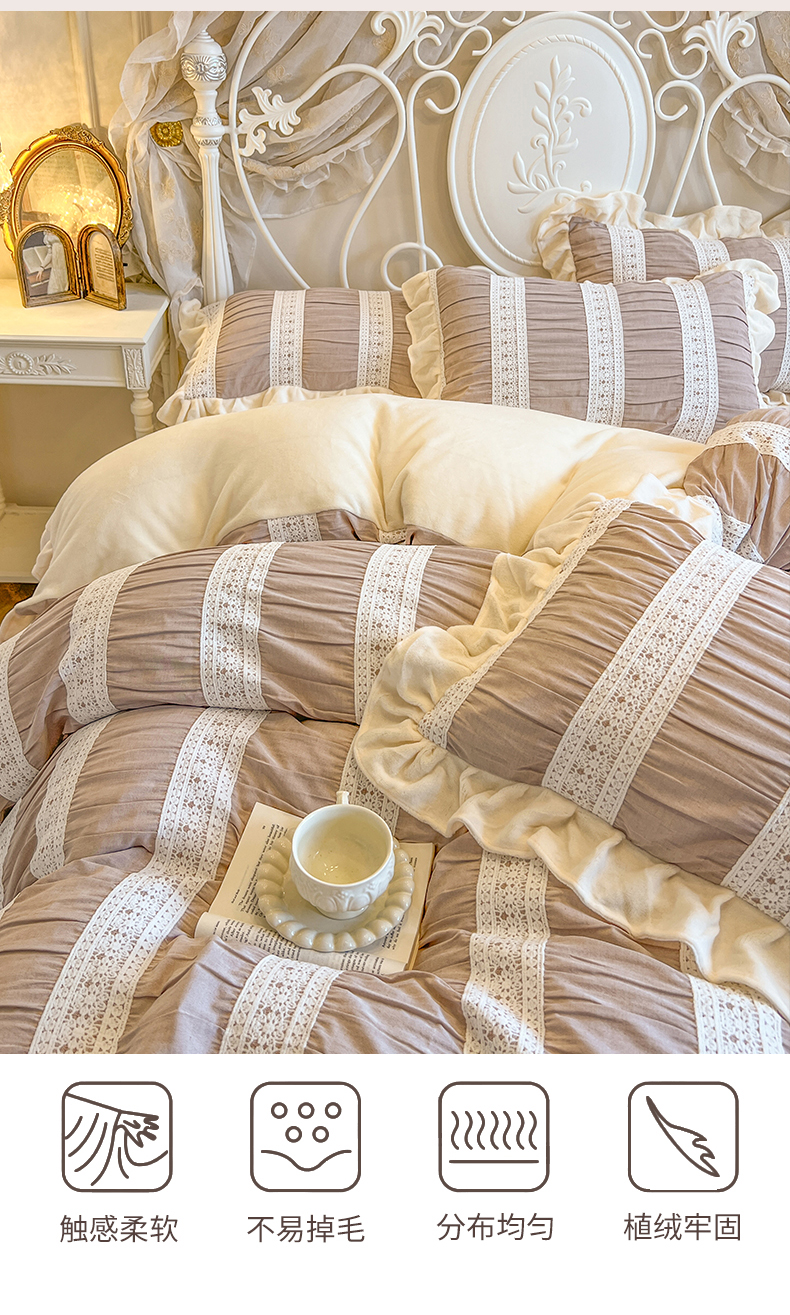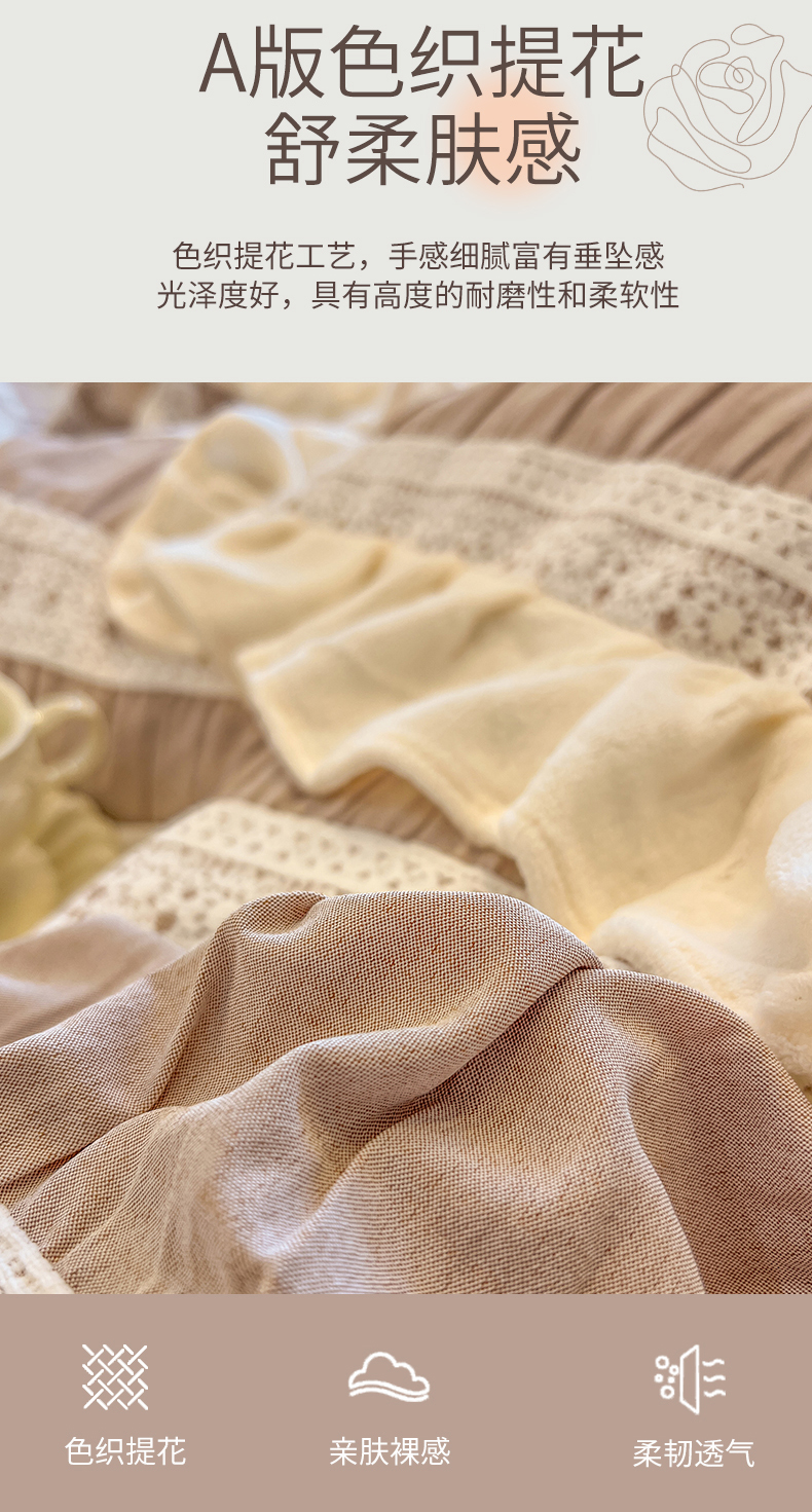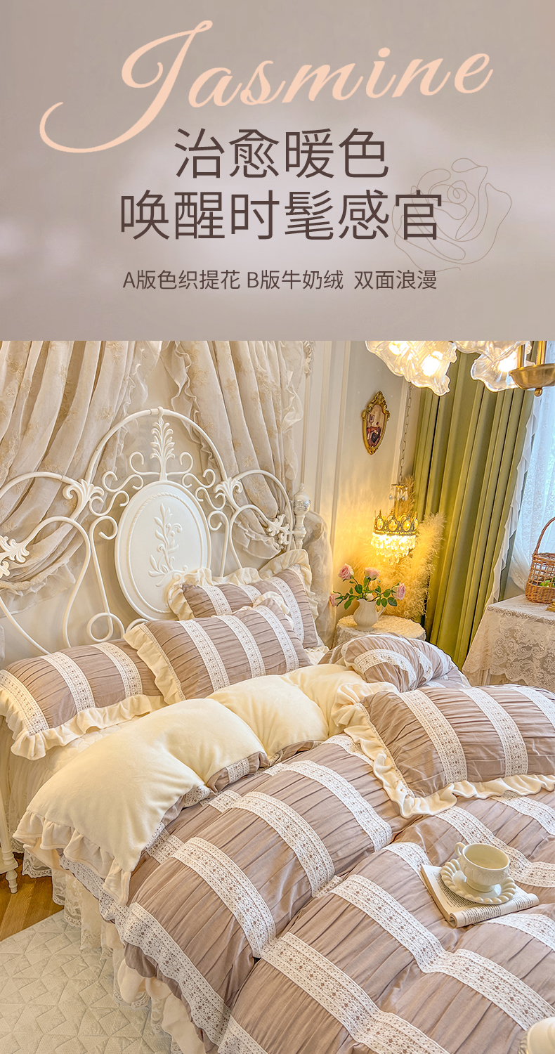 当前位置: 91家纺网 > 商品网购 > 床品套件 > 四件套 > 牛奶绒四件套 > (总)网红馆(ck家纺) 2025新款色织提花牛奶绒床裙四件套-洛丽塔系列