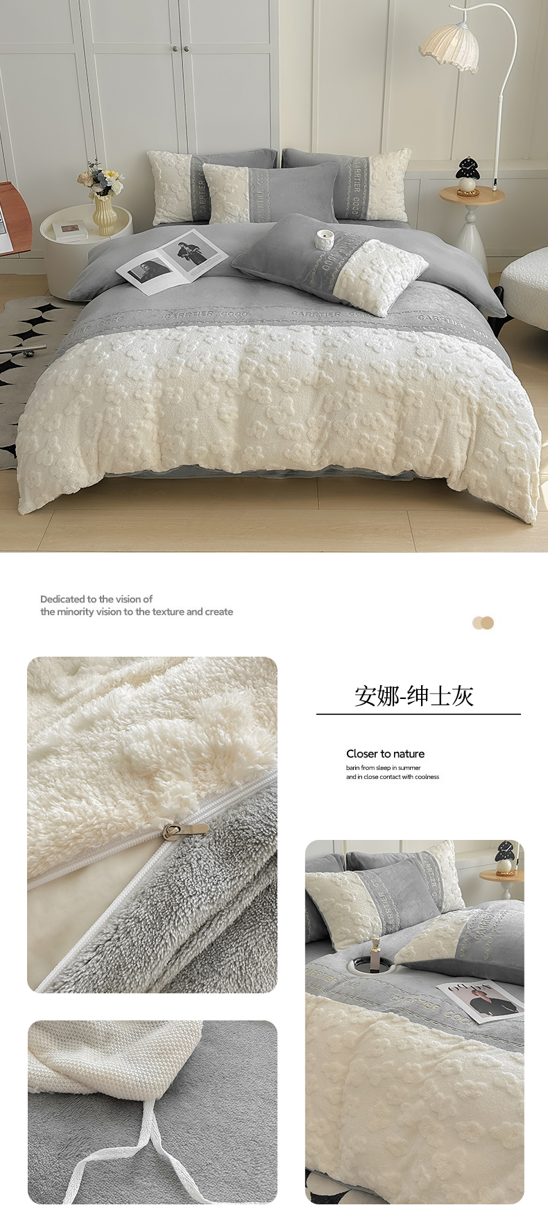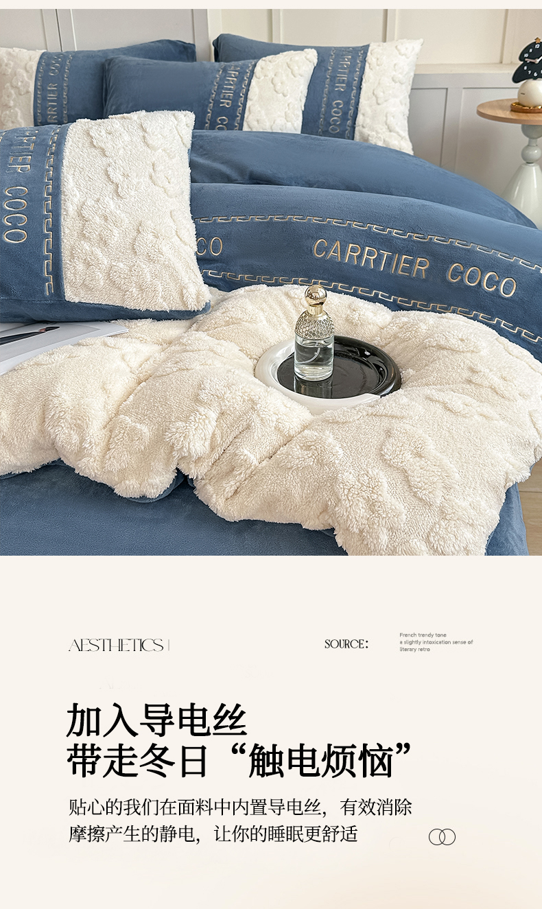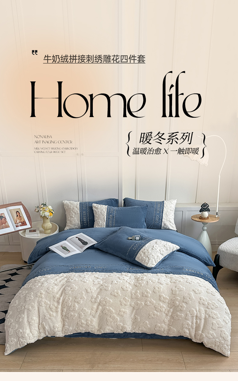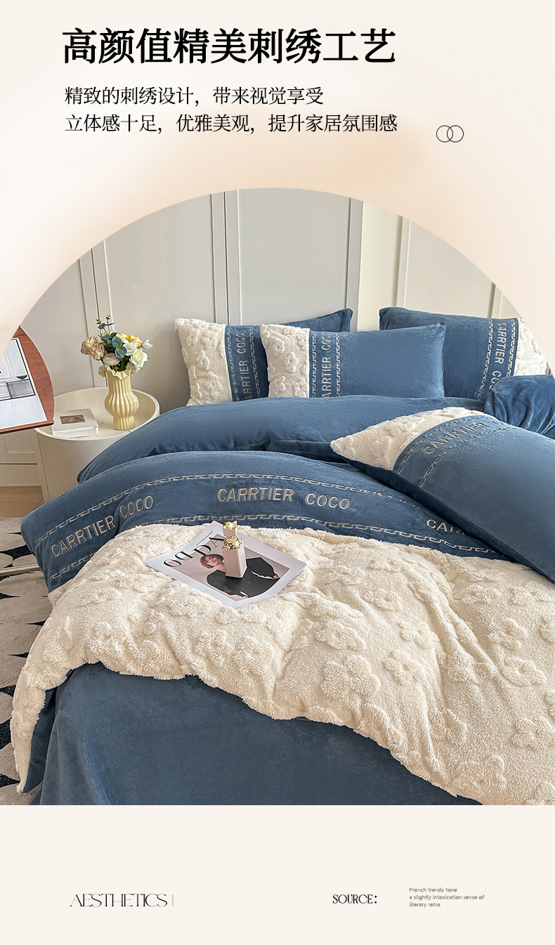 当前位置: 91家纺网 > 商品网购 > 床品套件 > 四件套 > 牛奶绒四件套 > 灰鲸 2025新款牛奶绒拼接刺绣四件套-安娜 安娜-宾利蓝
