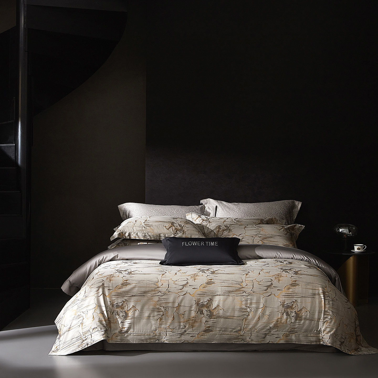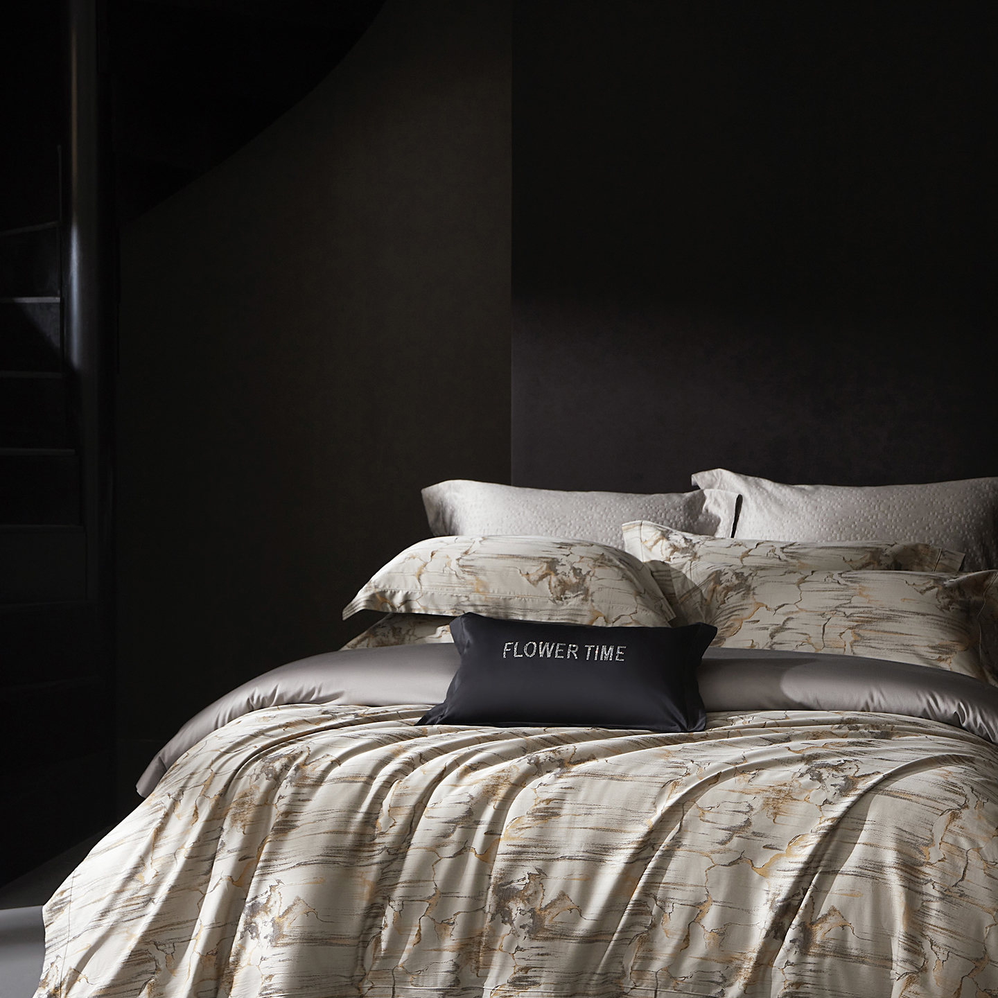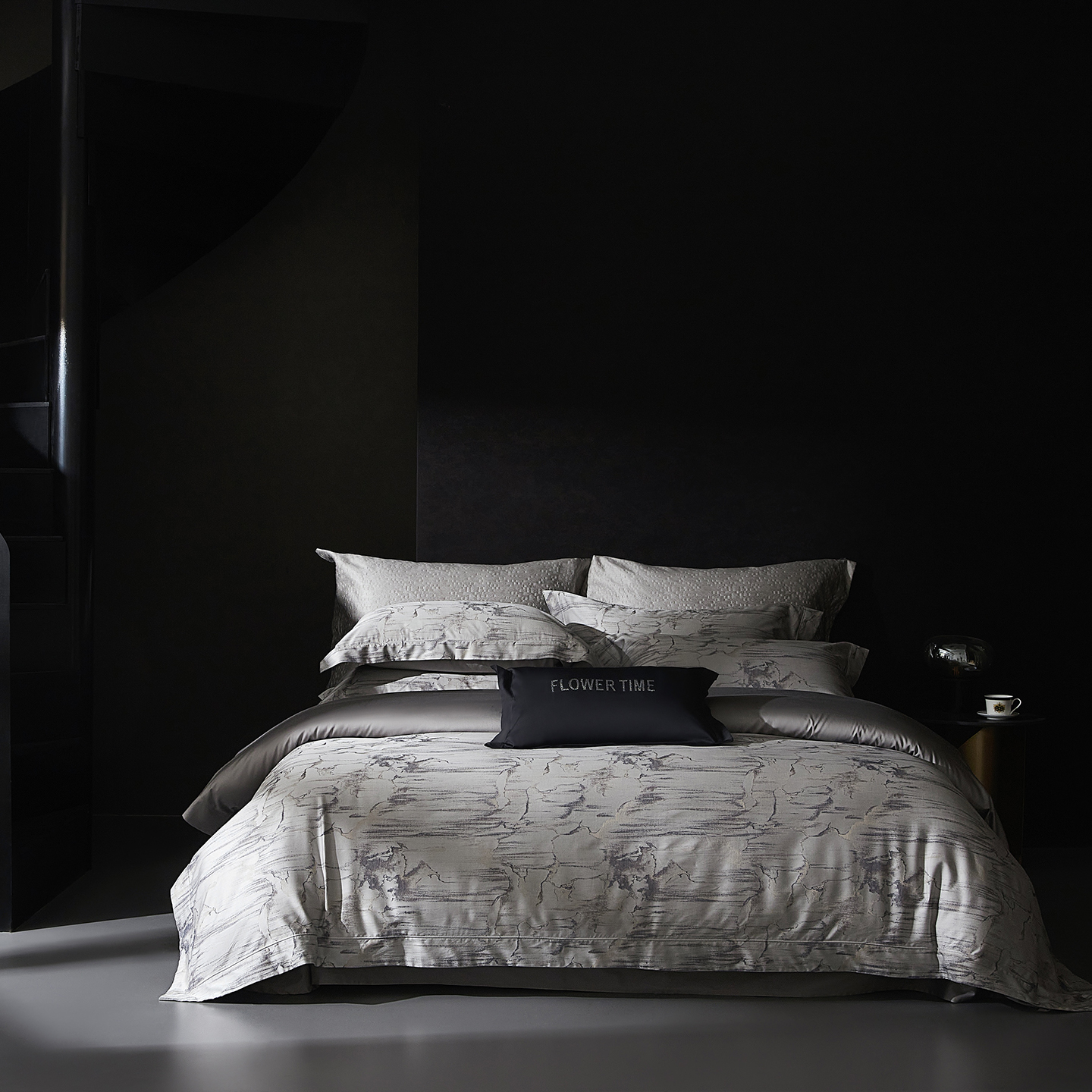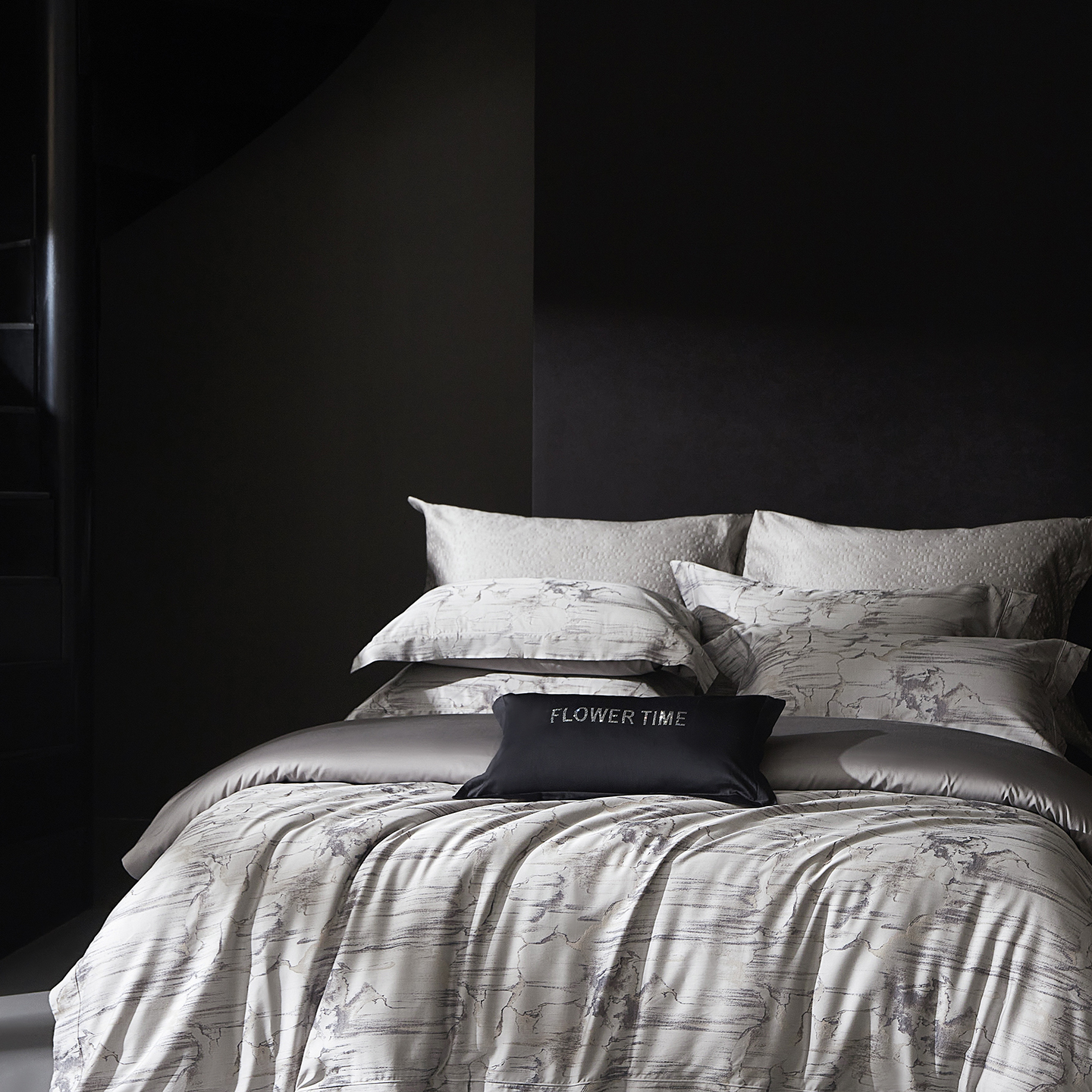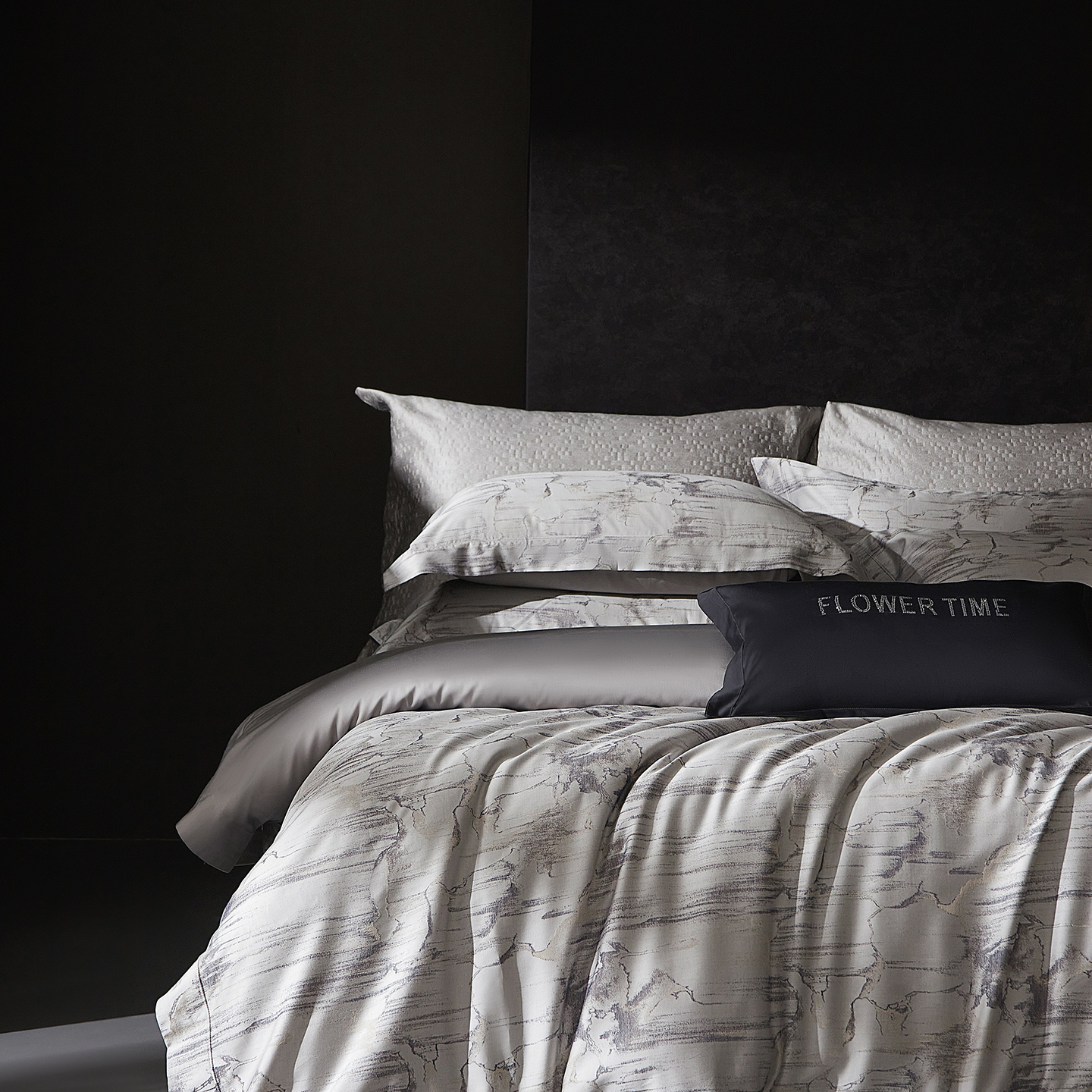 花时间 2025秋冬新品天丝棉色织错落空间系列四件套 错落空间-灰