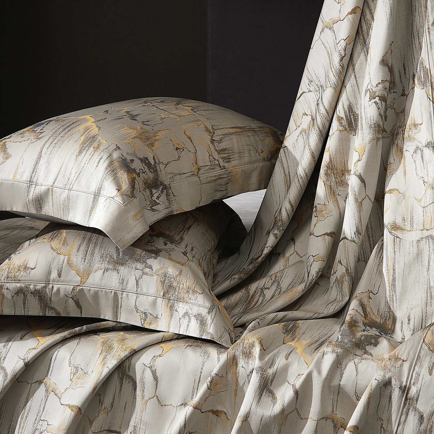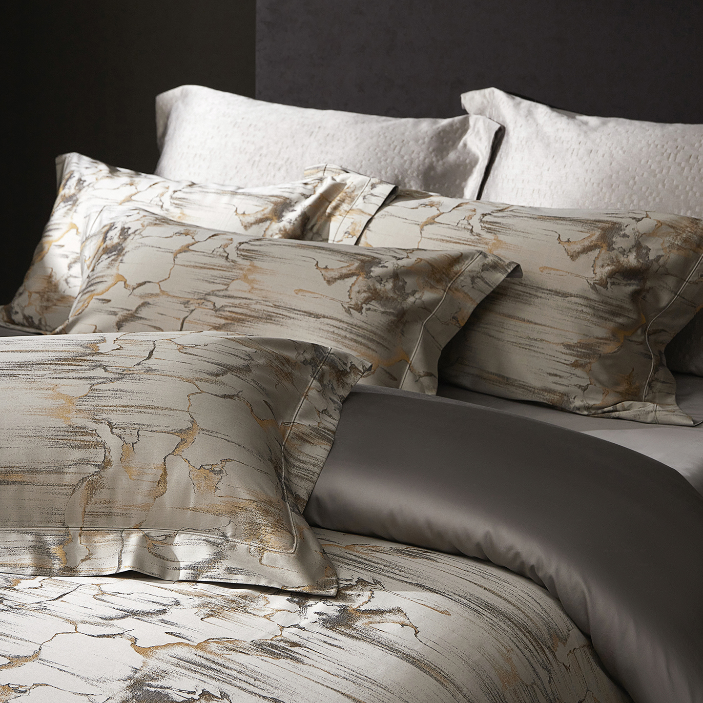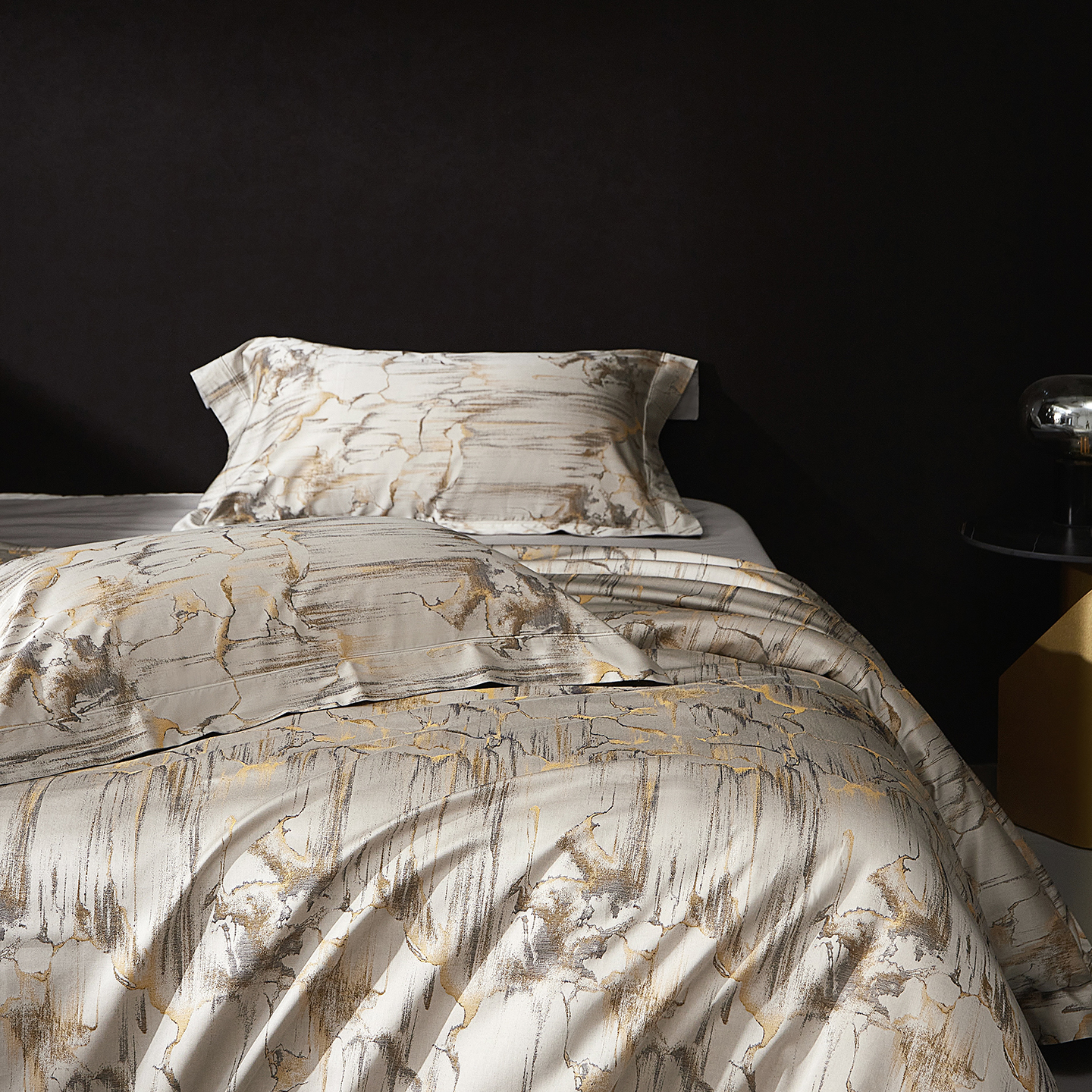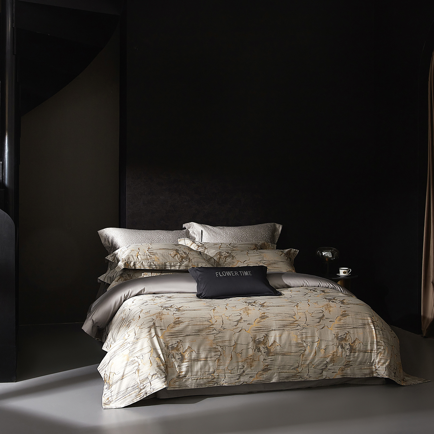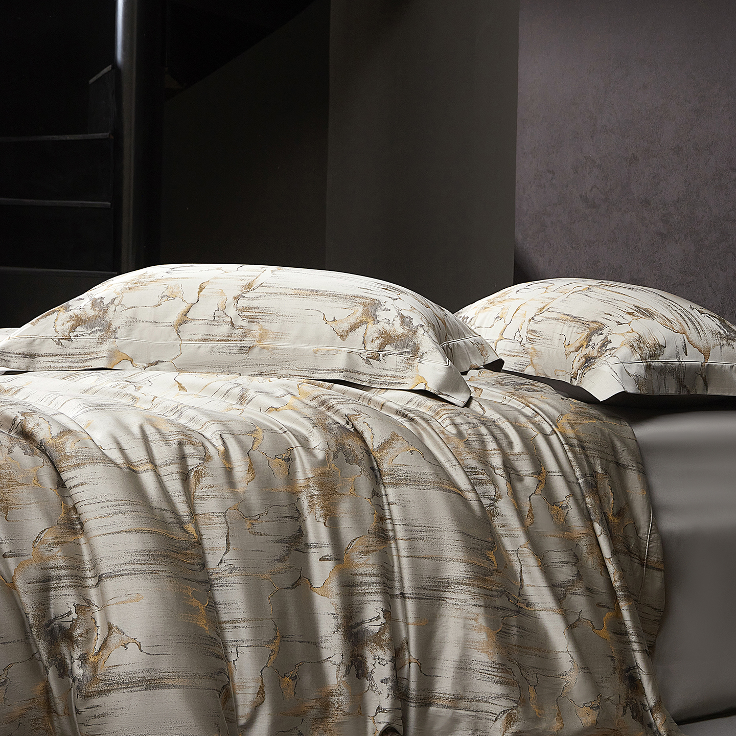 (总)花时间 2025秋冬新品天丝棉色织错落空间系列四件套(会员-20 全网控价:388/408),错落空间-灰,错落空间-金