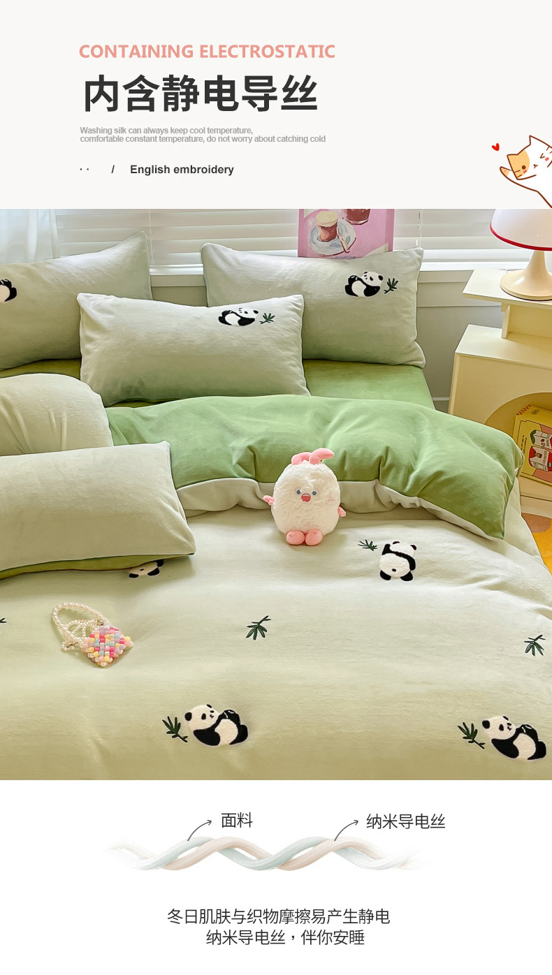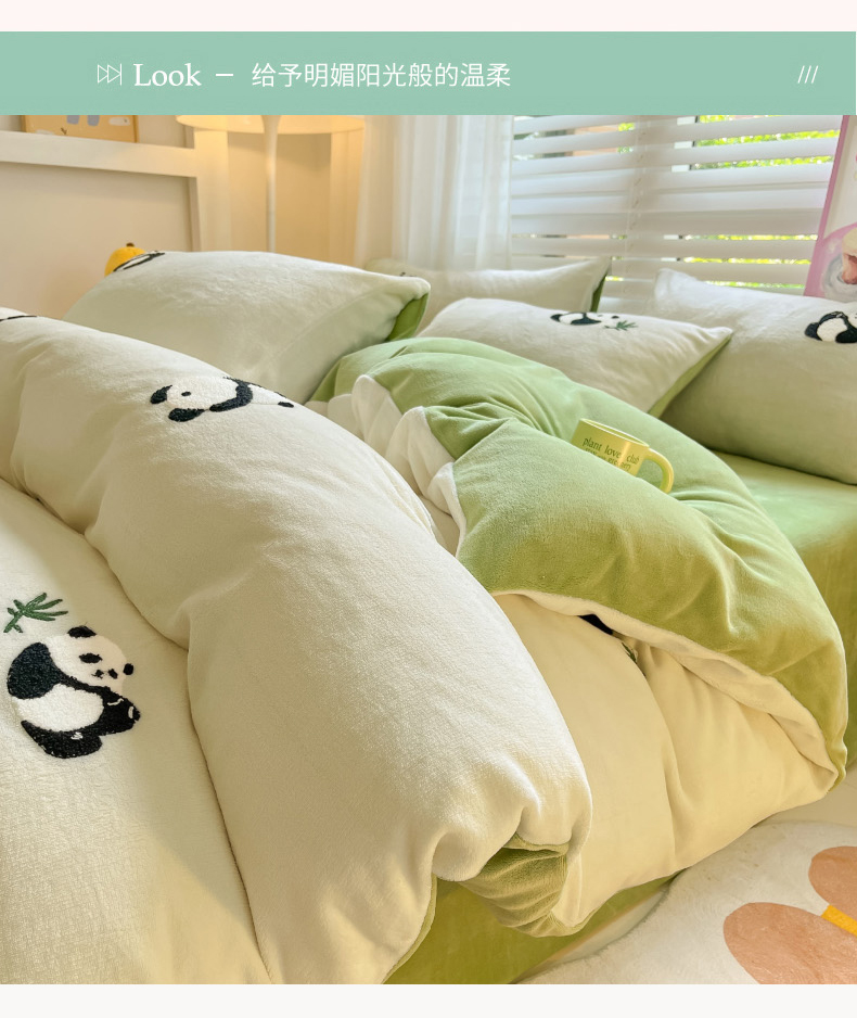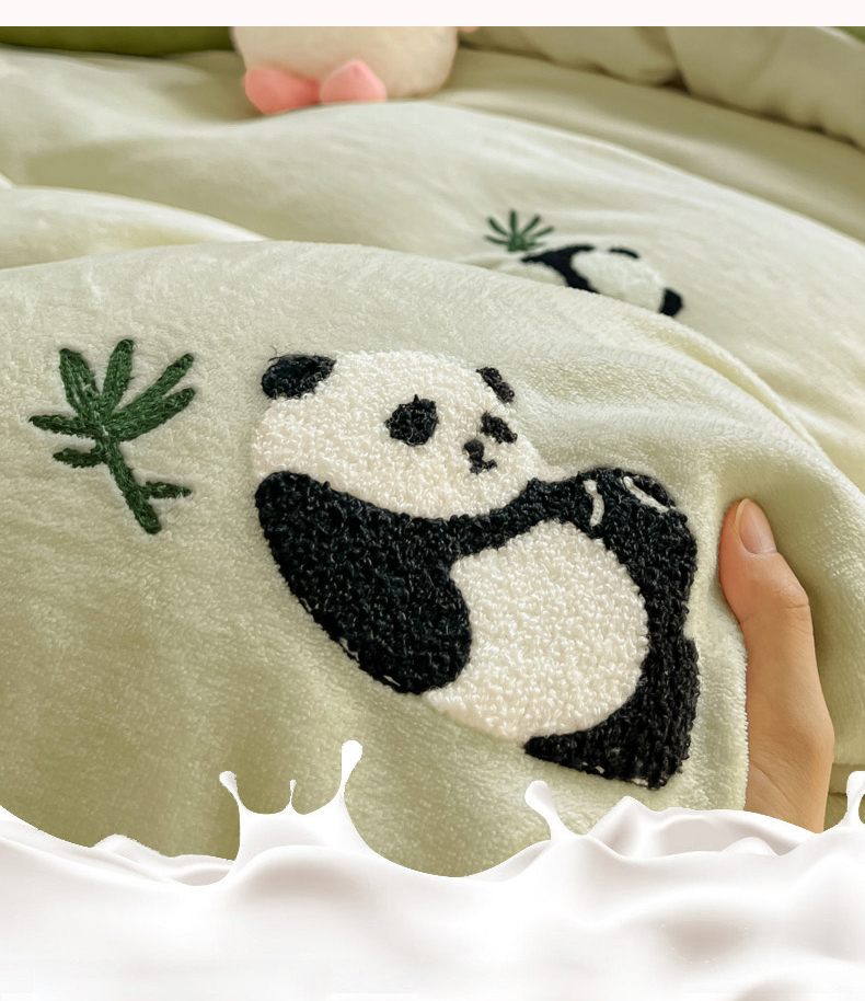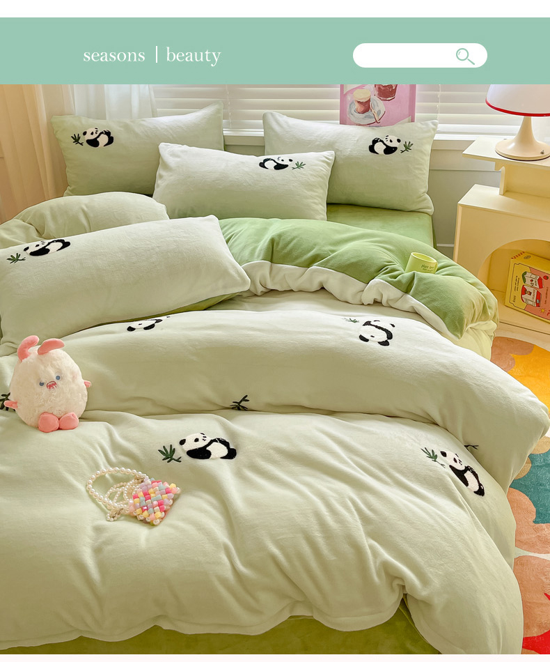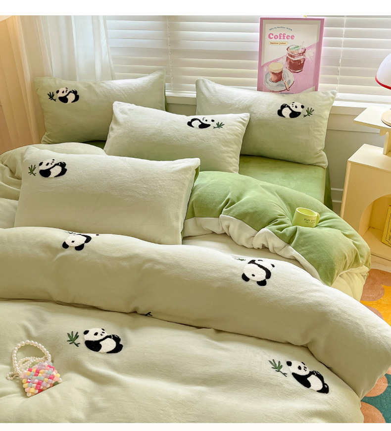 当前位置: 91家纺网 > 商品网购 > 床品套件 > 四件套 > 牛奶绒四件套 > 丽涵家纺 2025秋冬新品210克牛奶绒毛巾绣四件套卡通绣花学生床笠三件套 呆萌熊猫-巩绿