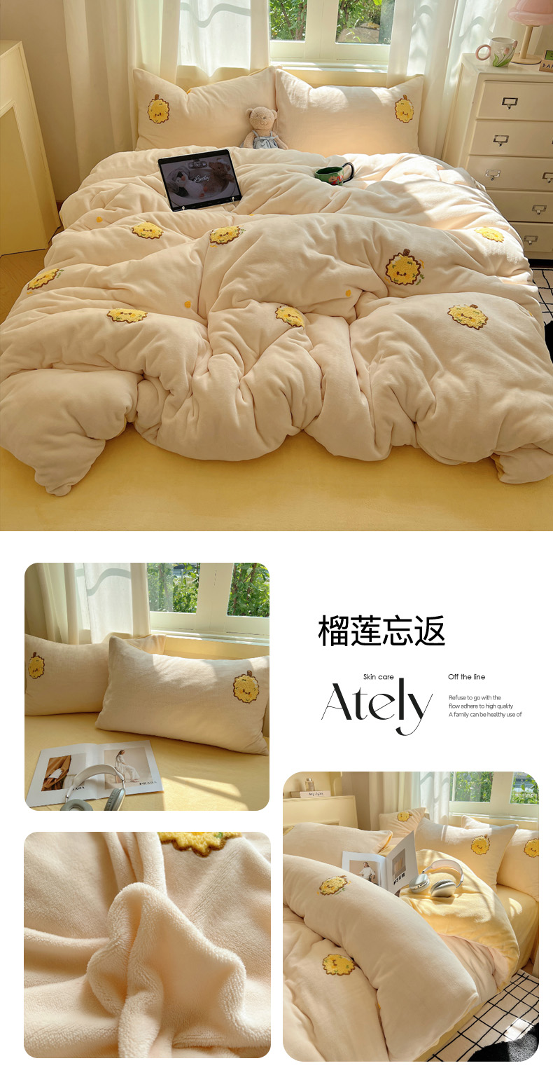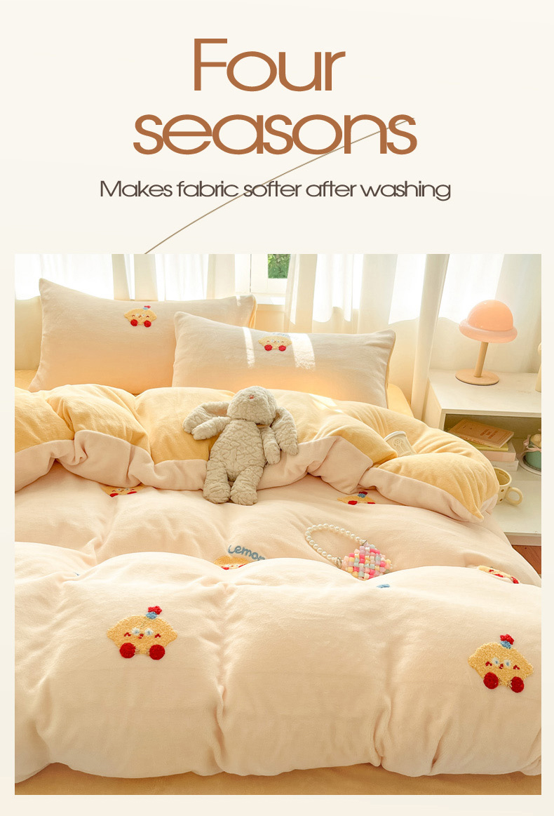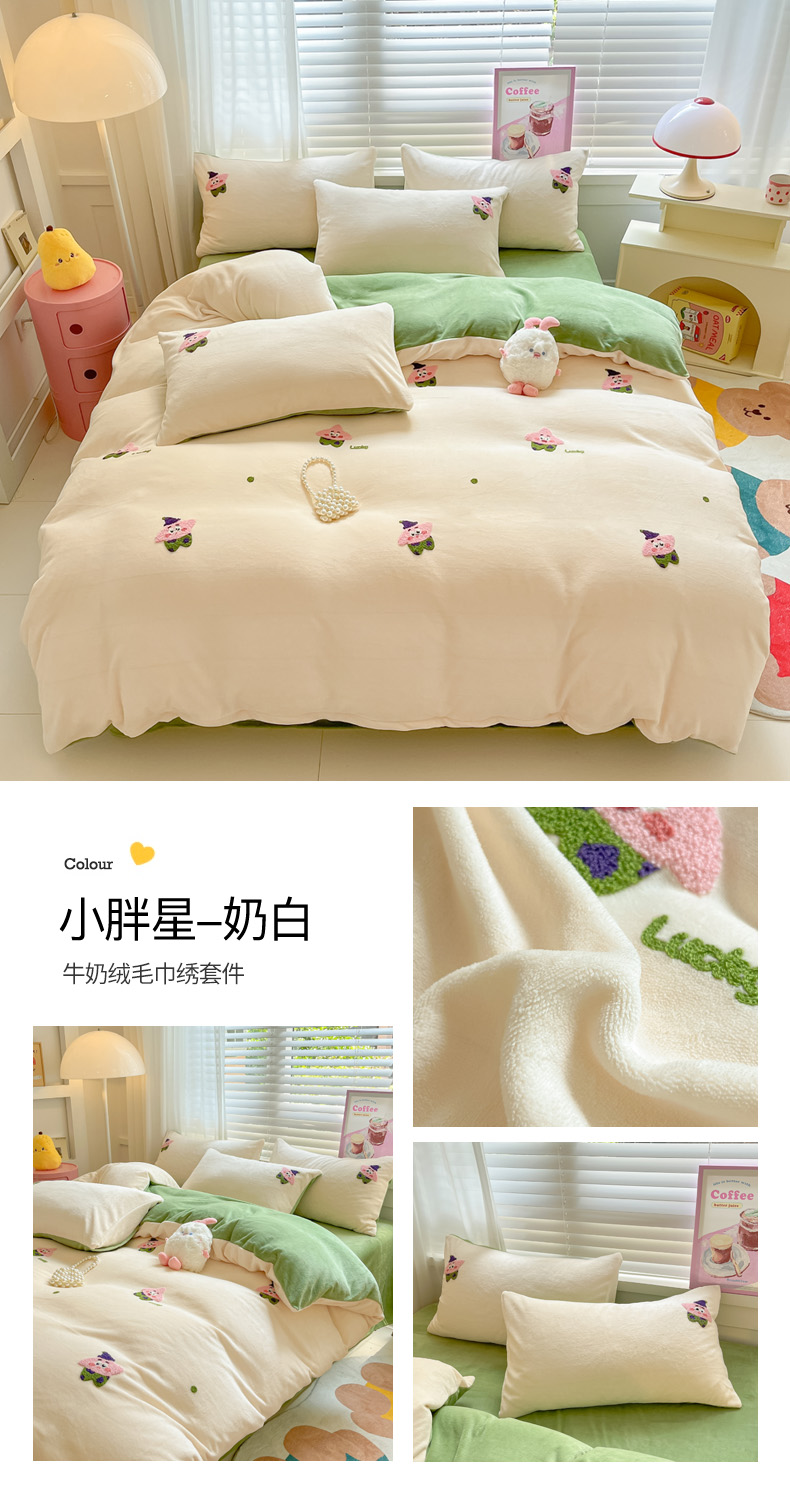 当前位置: 91家纺网 > 商品网购 > 床品套件 > 四件套 > 牛奶绒四件套 > 丽涵家纺 2025秋冬新品210克牛奶绒毛巾绣四件套卡通绣花学生床笠三件套 小胖星-奶白