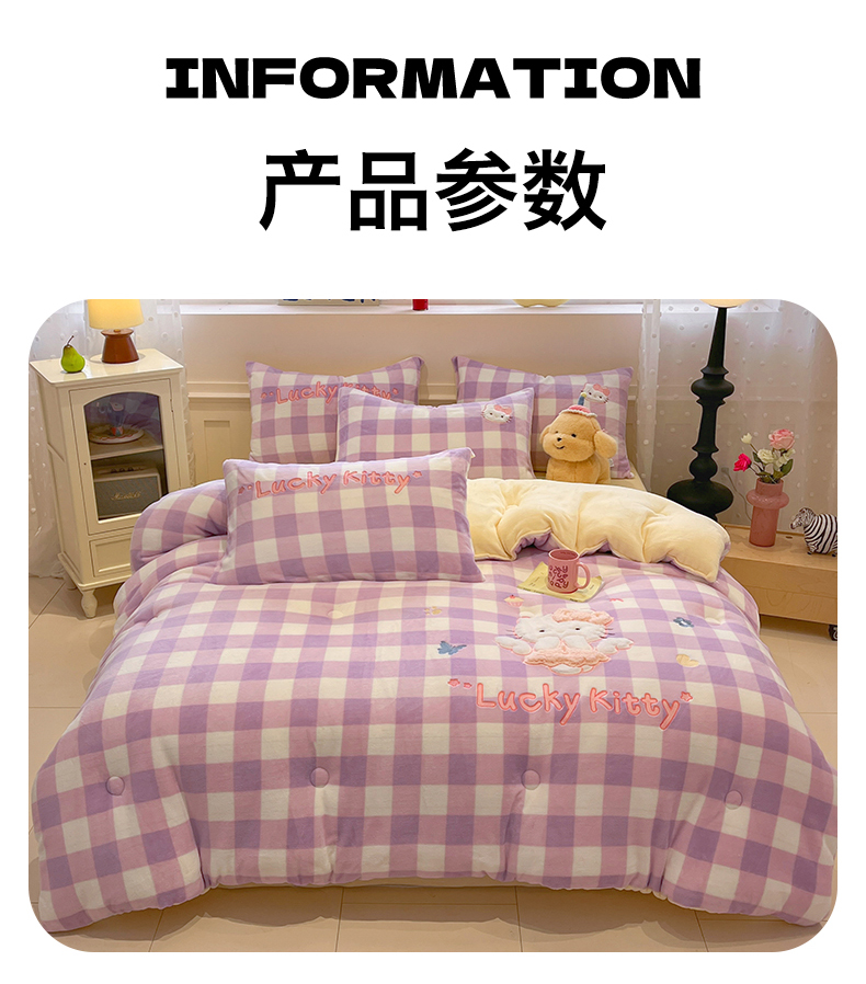 商品名称:星座家纺 2025新款A类牛奶绒贴布绣冬被被子被芯 Lucky猫