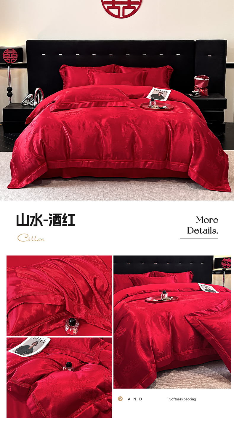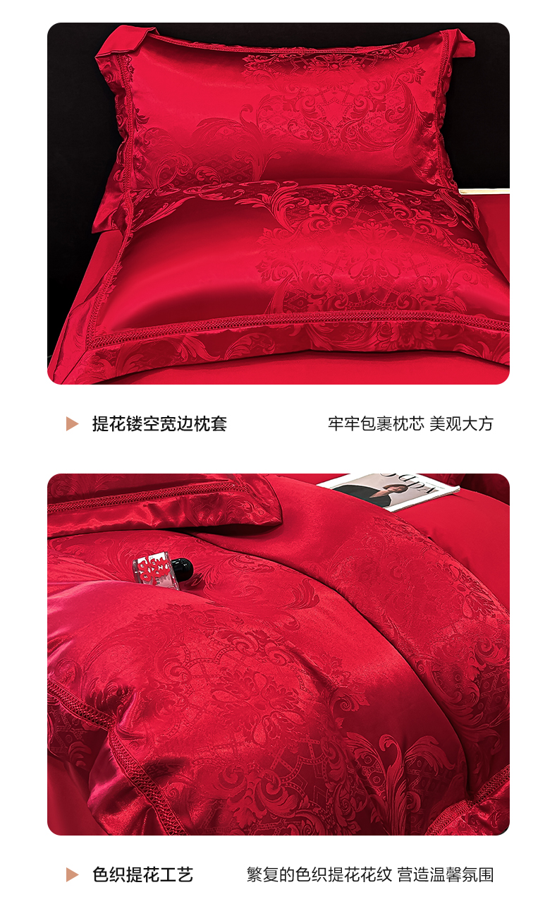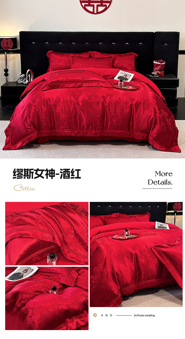 商品名称:博纳家纺 2025新款亲肤棉高端色这提花婚庆镂空宽边高级简奢款拼四件套 控价劵后188(严格按控价来) 缪斯女神-酒红