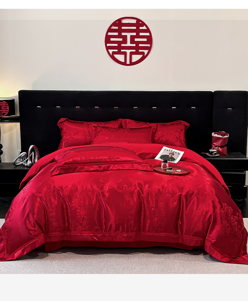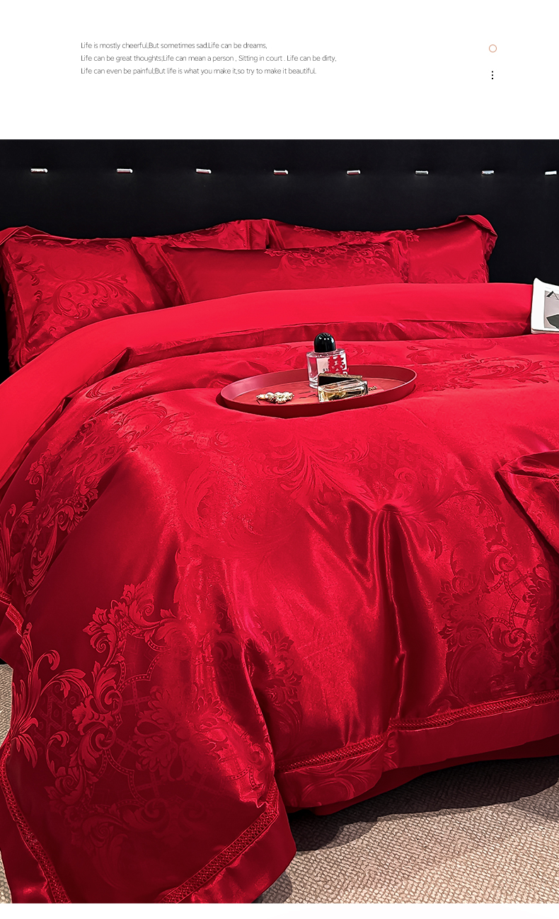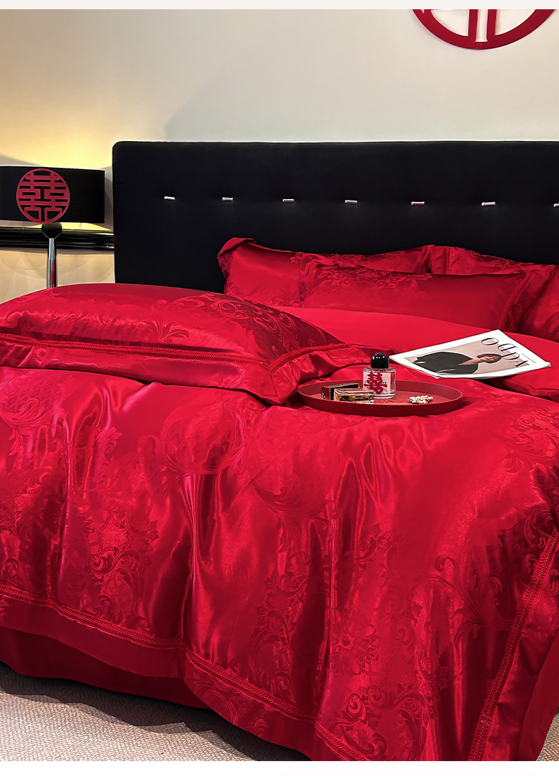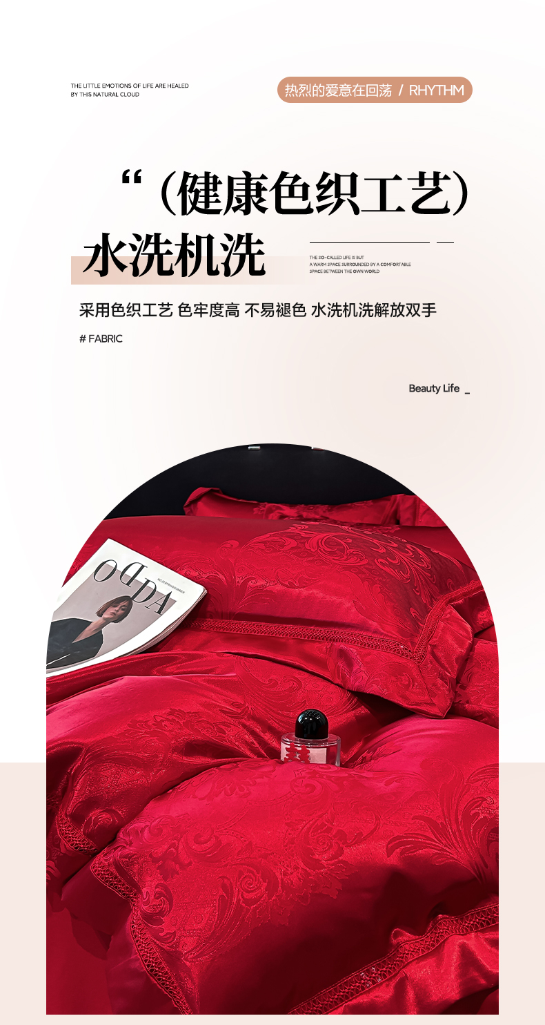 商品名称:博纳家纺 2025新款亲肤棉高端色这提花婚庆镂空宽边高级简奢款拼四件套 控价劵后188(严格按控价来) 缪斯女神-酒红