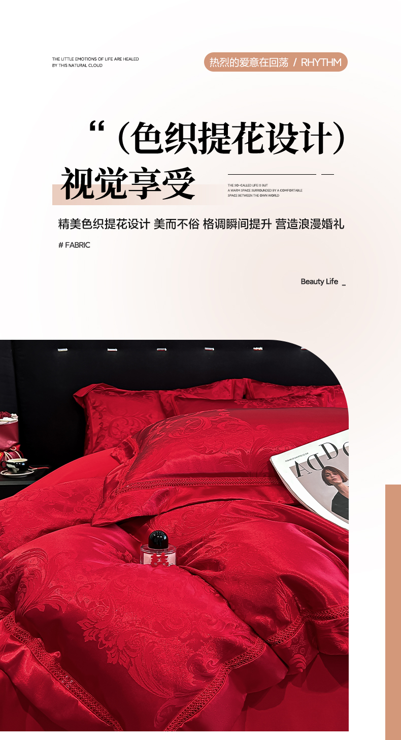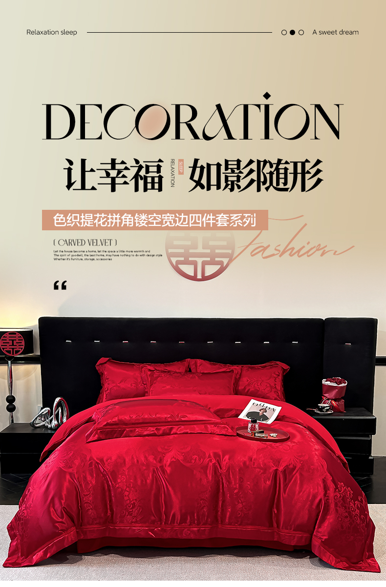 博纳家纺 2025新款亲肤棉高端色这提花婚庆镂空宽边高级简奢款拼四件套 控价劵后188(严格按控价来) 缪斯女神-酒红