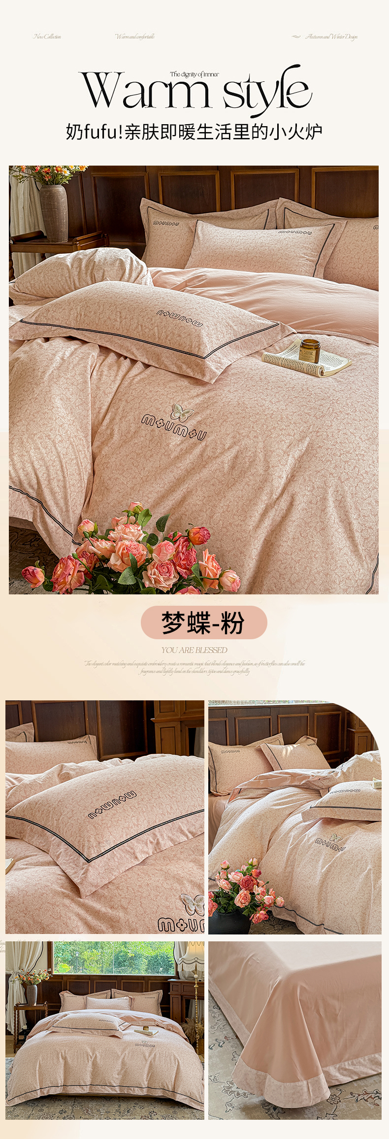(总)舒慕家纺 2025新款长绒棉磨毛全棉磨毛四件套,梦蝶-粉,梦蝶-黄,梦蝶-灰,梦蝶-绿,熊猫-粉,熊猫-橘,熊猫-蓝,熊猫-驼