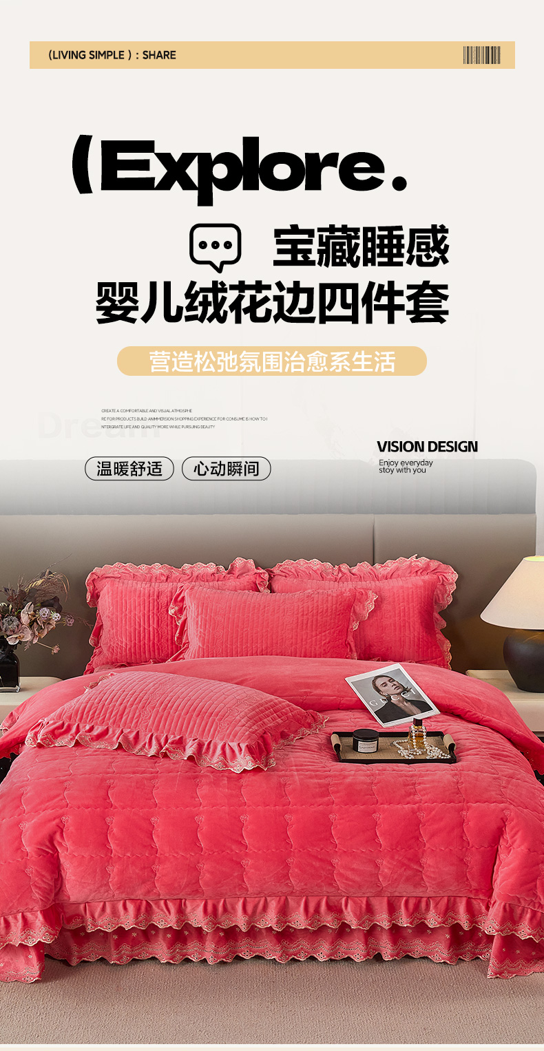 (总)青竹苑 2025新款婴儿绒宝宝绒玫瑰版床盖款四件套,慕达-绿,慕达-红,慕达-青,慕达-深粉,慕达-妍红,慕达-紫
