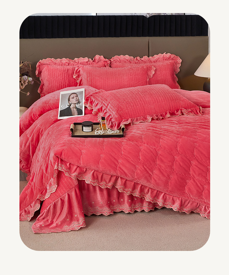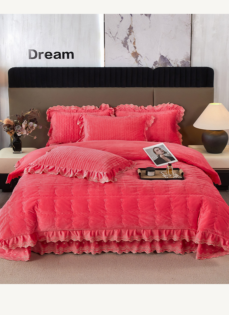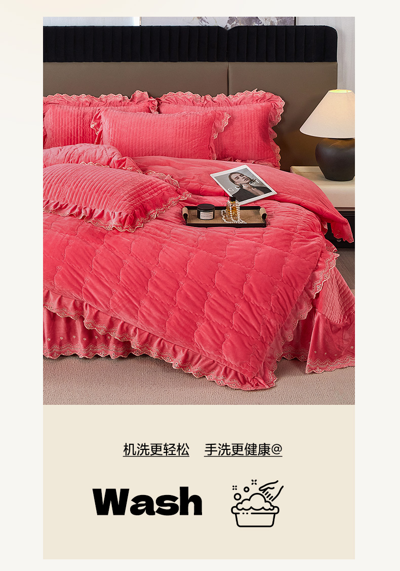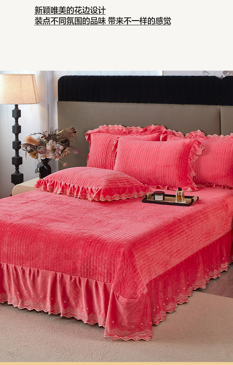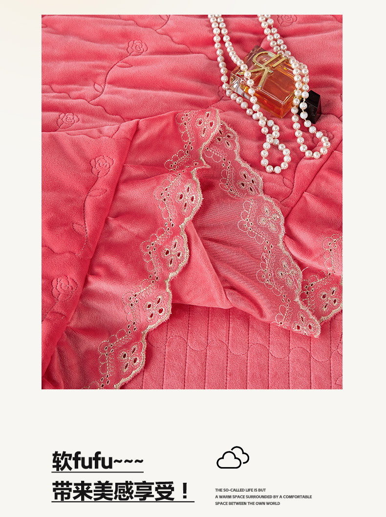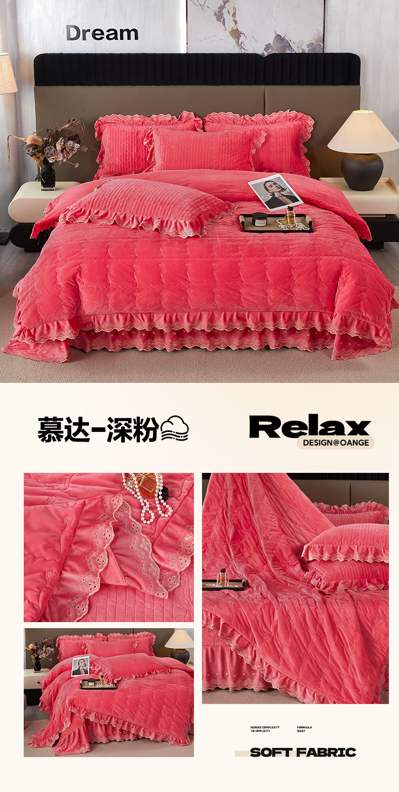 商品名称:青竹苑 2025新款婴儿绒宝宝绒玫瑰刺绣版床盖款四件套 慕达-深粉