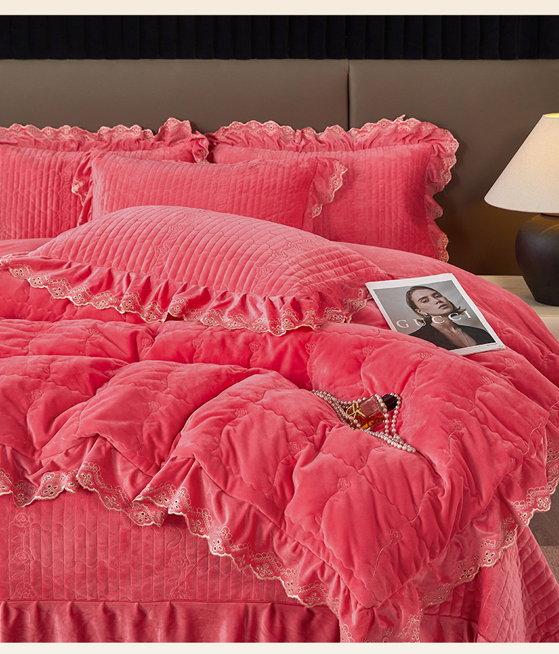 青竹苑 2025新款婴儿绒宝宝绒玫瑰刺绣版床盖款四件套 慕达-深粉