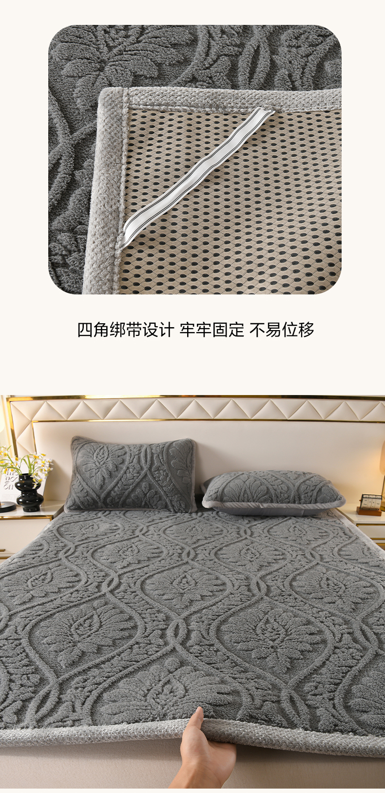 商品名称:鑫姿席业 2025新款A类高克重雕花牛奶绒床垫 米兰-深灰