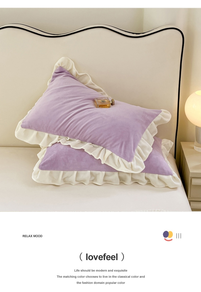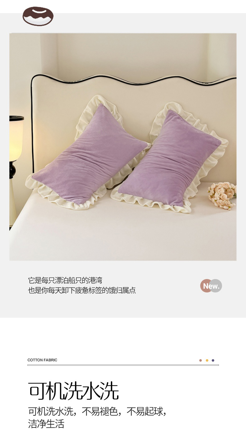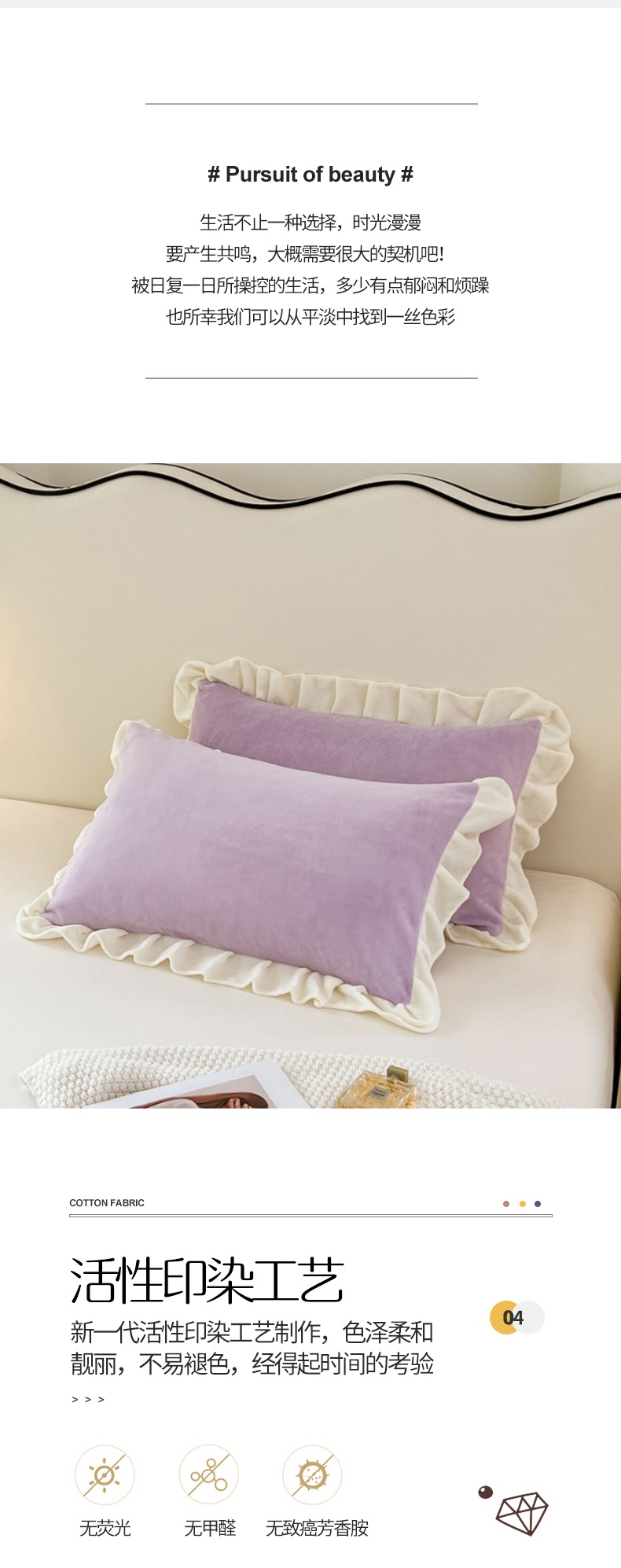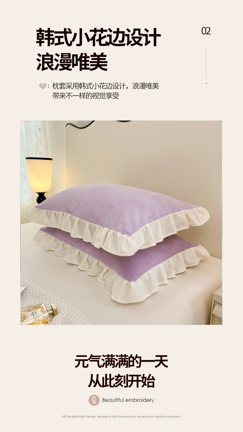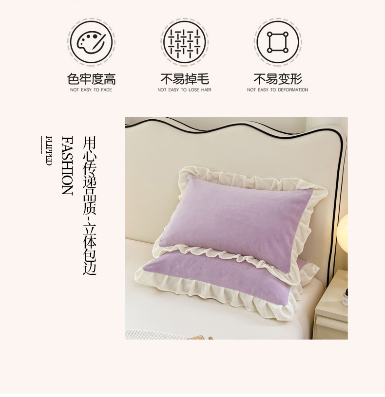 商品名称:梦舒羽 2025A类新款牛奶绒花枕套边单人宿舍法兰绒枕头套珊瑚绒枕芯套 丁香紫