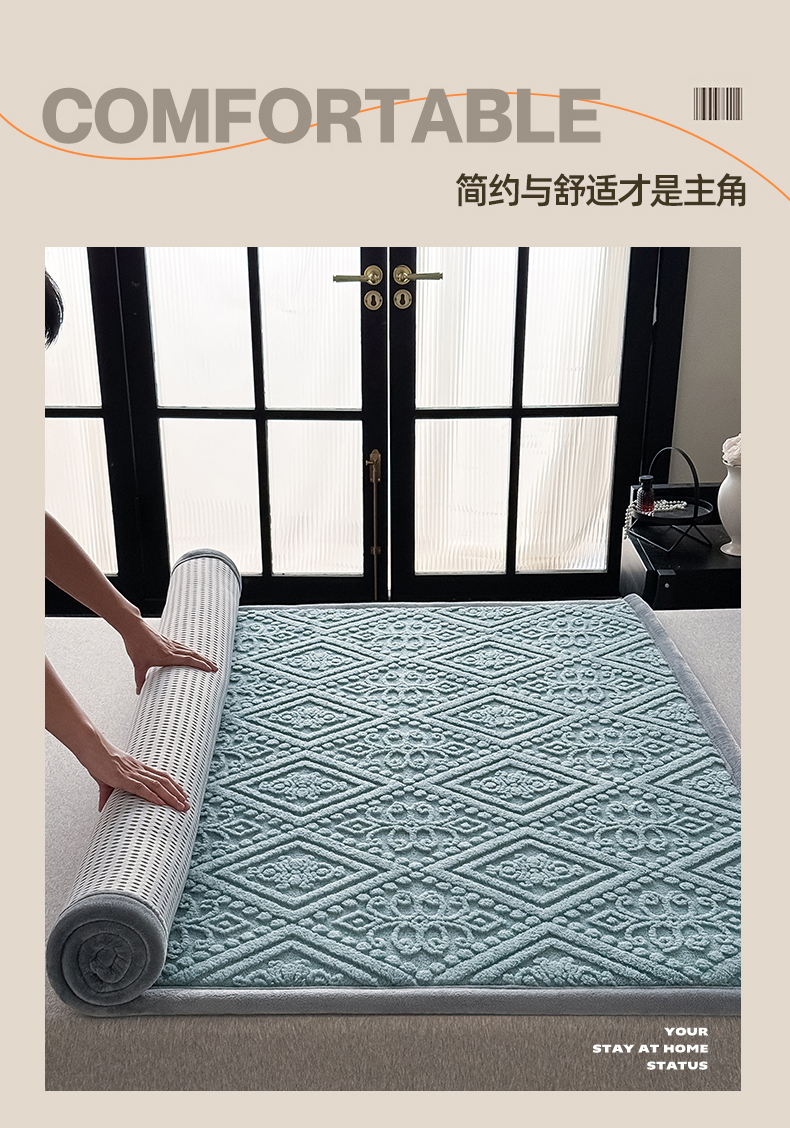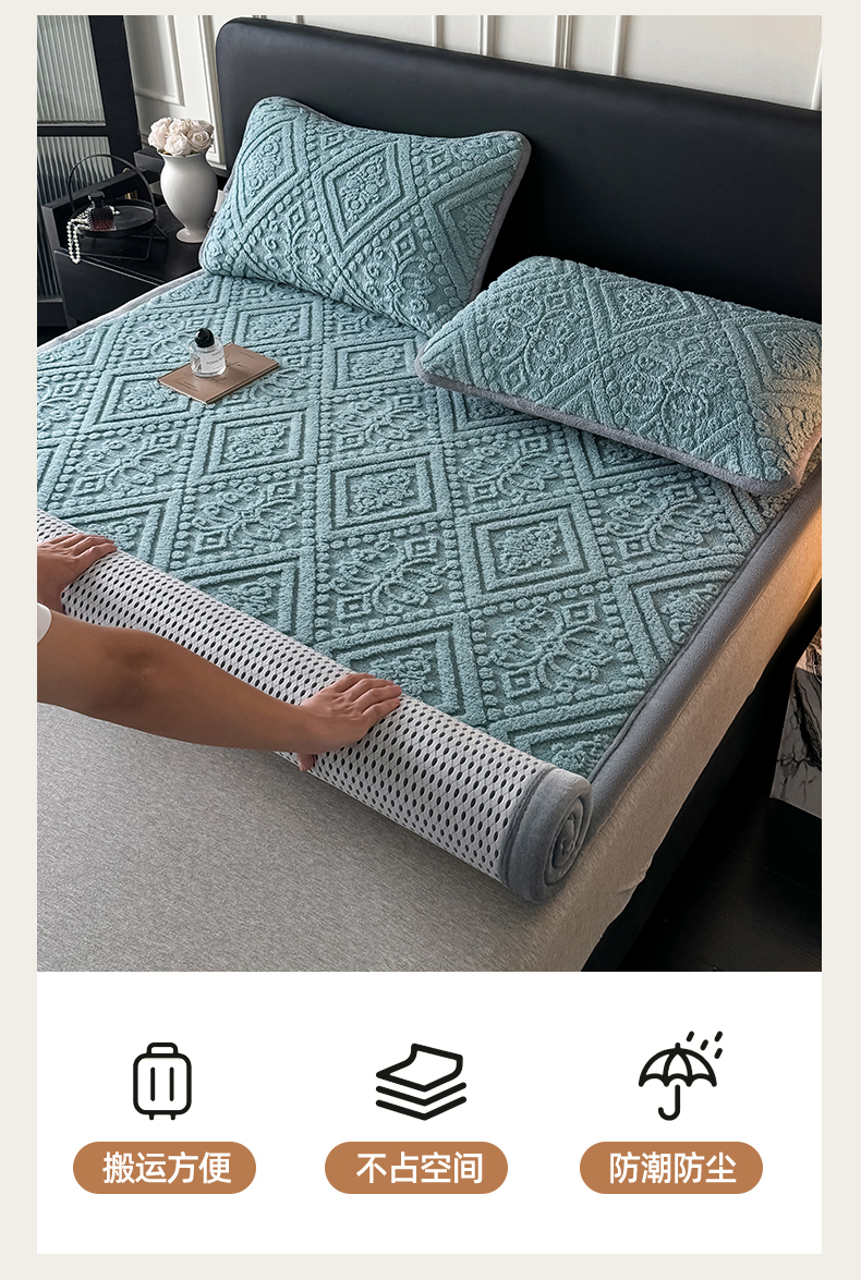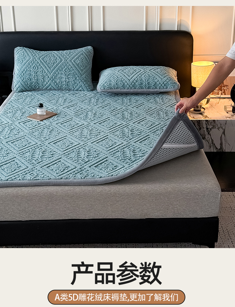 商品名称:鑫姿席业 2025新款5D雕花绒床褥垫床垫 叶菱格-蓝
