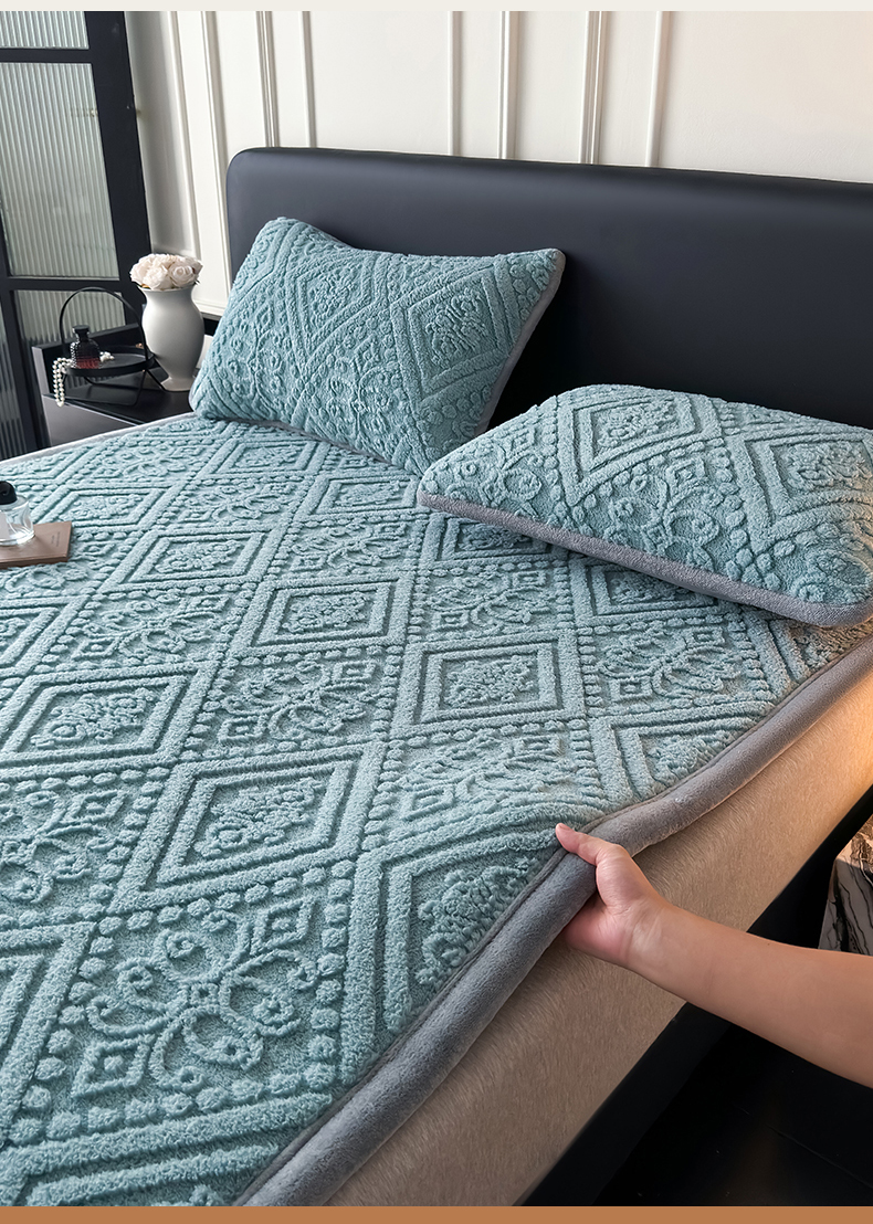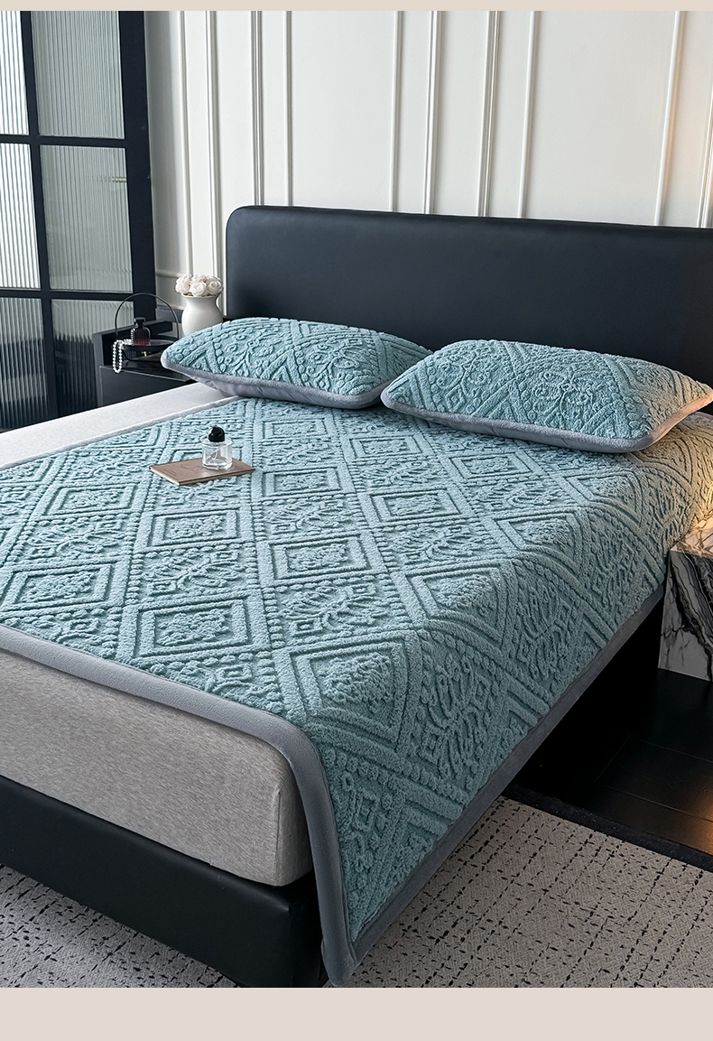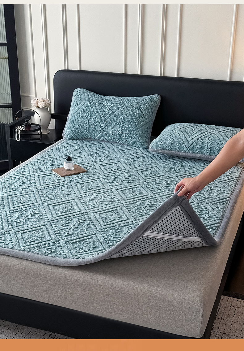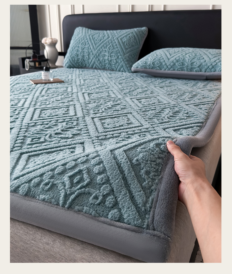鑫姿席业 2025新款5D雕花绒床褥垫床垫 叶菱格-蓝