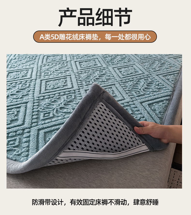 (总)鑫姿席业 2025新款5D雕花绒床褥垫床垫,饼干花-白,饼干花-粉,饼干花-灰,饼干花-卡其,饼干花-兰,饼干花-绿,叶菱格-白,叶菱格-咖,叶菱格-蓝,叶菱格-绿