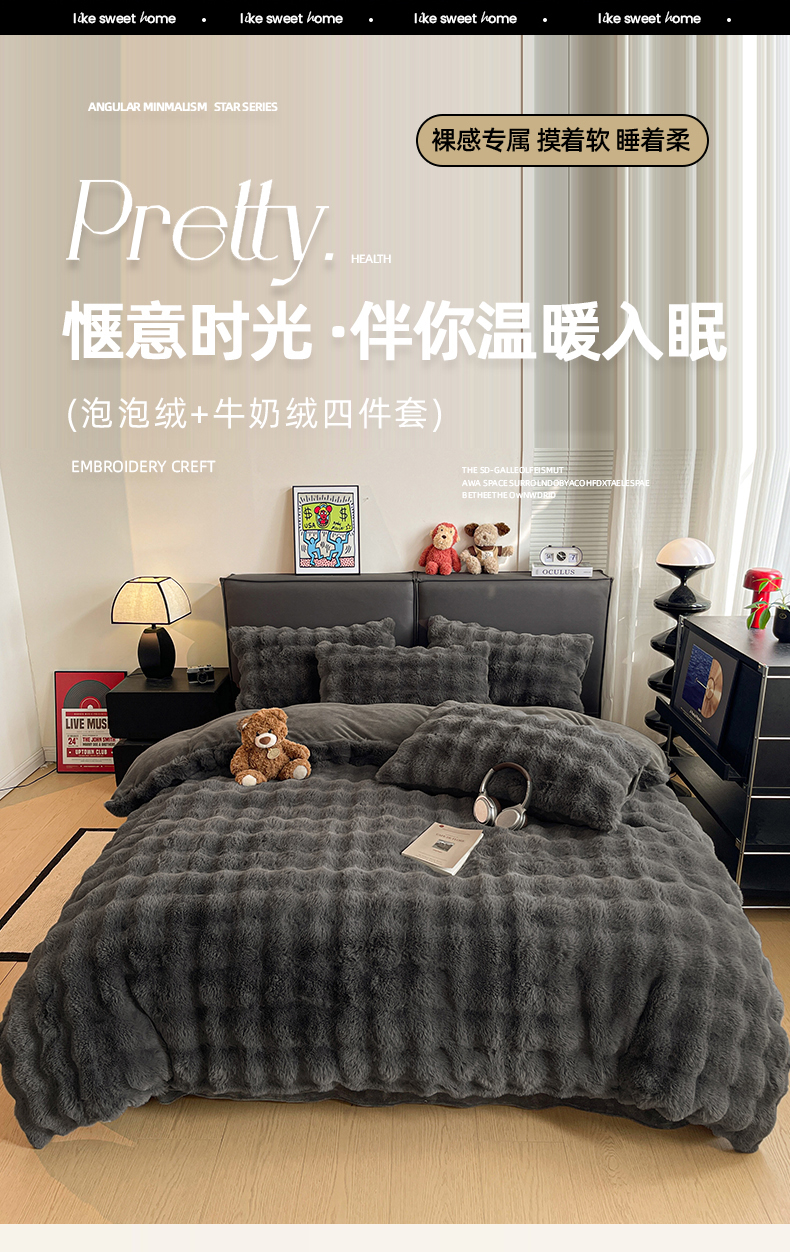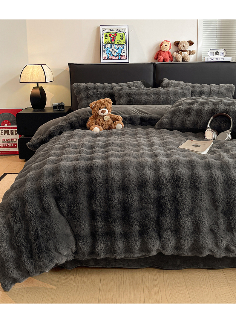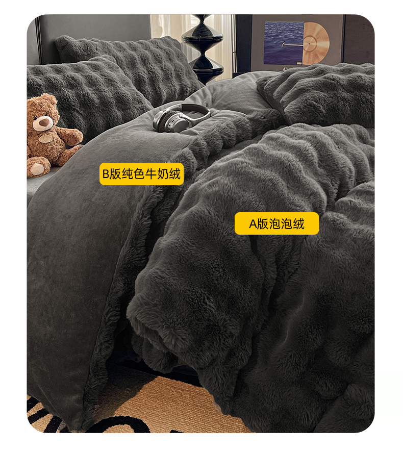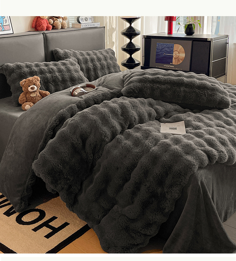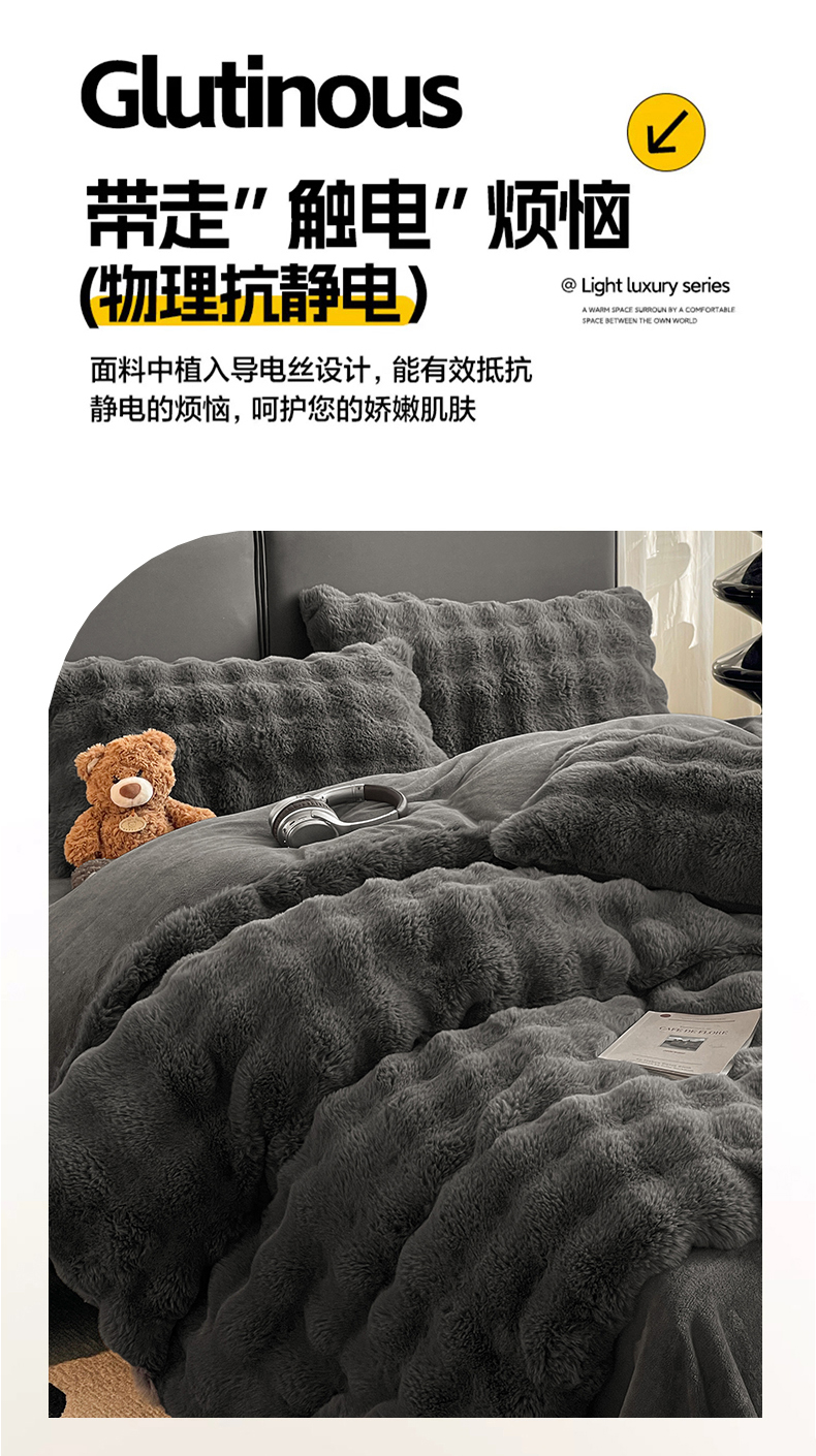 商品名称:凯洛奇 2025新款兔毛绒四件套牛奶绒四件套大泡泡兔毛四件套 暗夜灰