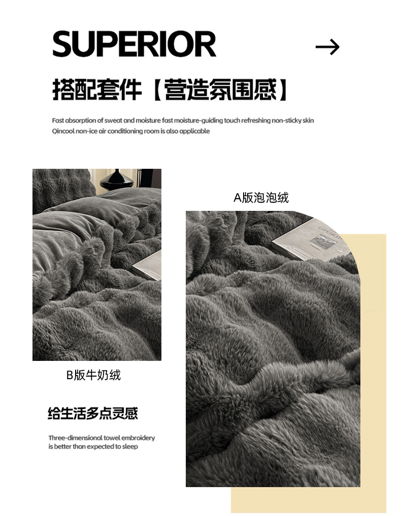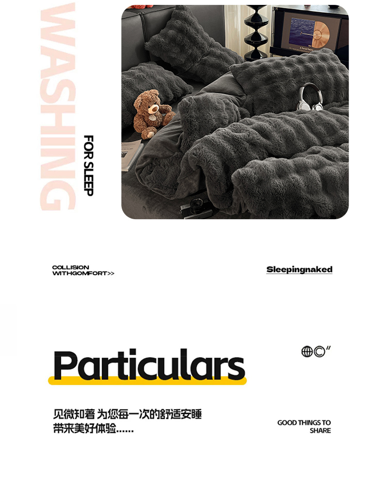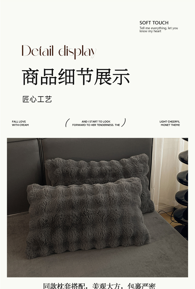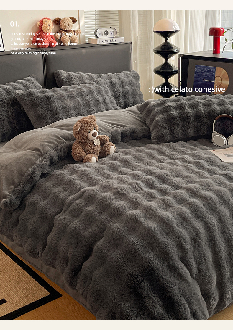 商品名称:凯洛奇 2025新款兔毛绒四件套牛奶绒四件套大泡泡兔毛四件套 暗夜灰