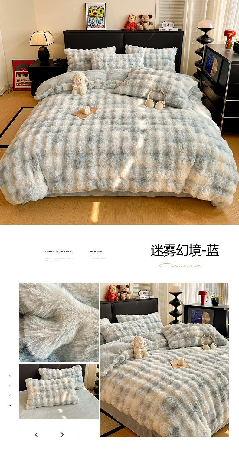 (总)凯洛奇 2025新款兔毛绒四件套牛奶绒四件套大泡泡兔毛四件套,迷雾幻境-粉,迷雾幻境-灰,迷雾幻境-紫,迷雾幻境-绿,浅卡其,迷雾幻境-蓝,奶油白,暗夜灰,月光灰