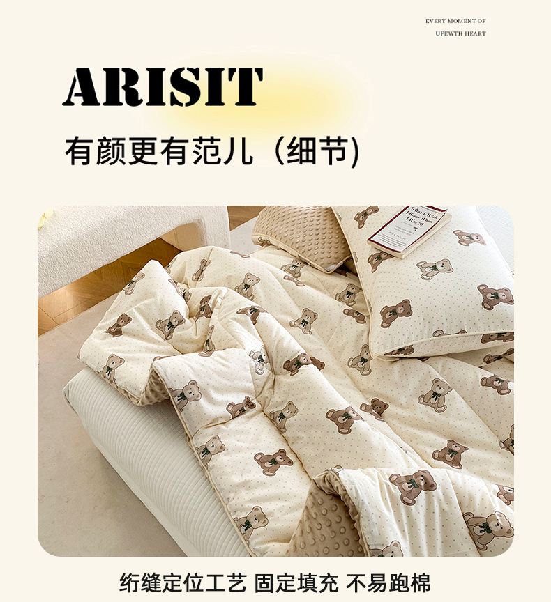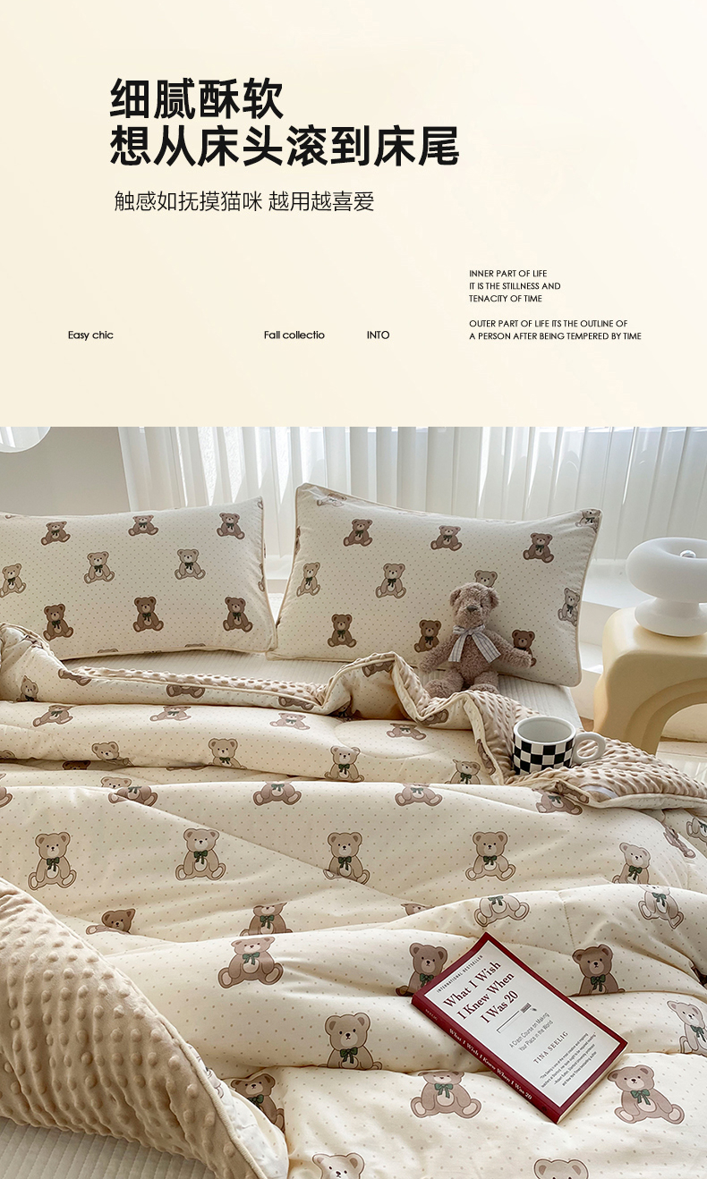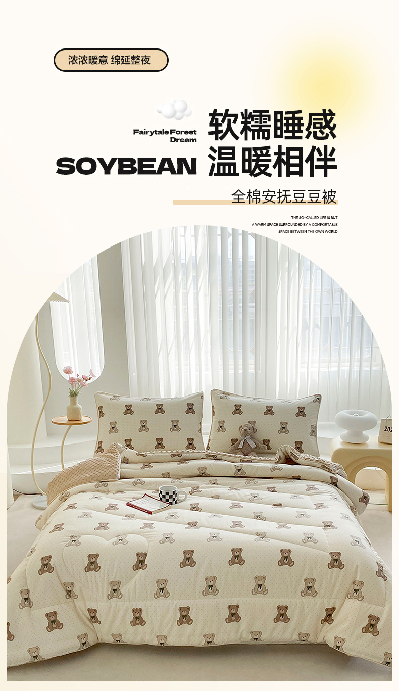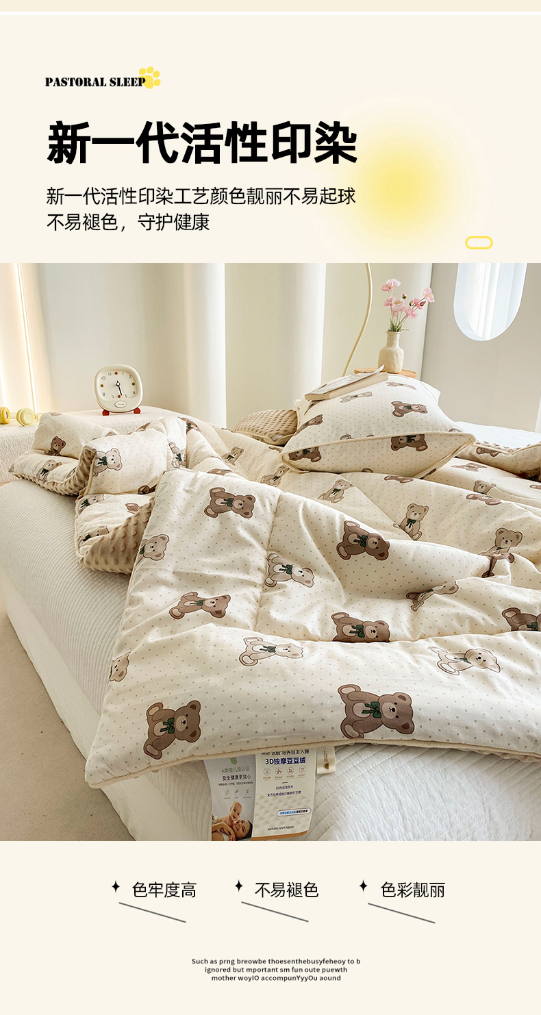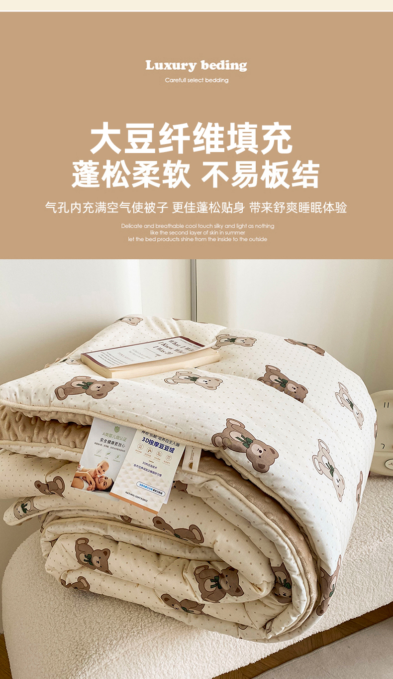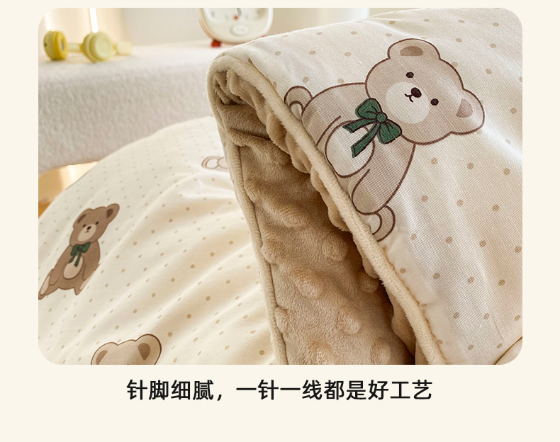 青螺家纺 2025新款高密全棉嵌绳宝宝绒春秋豆豆被 支持定制花色和冬被 有量来门市优惠 超熊仔