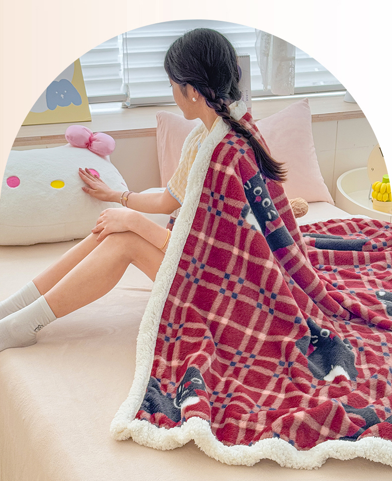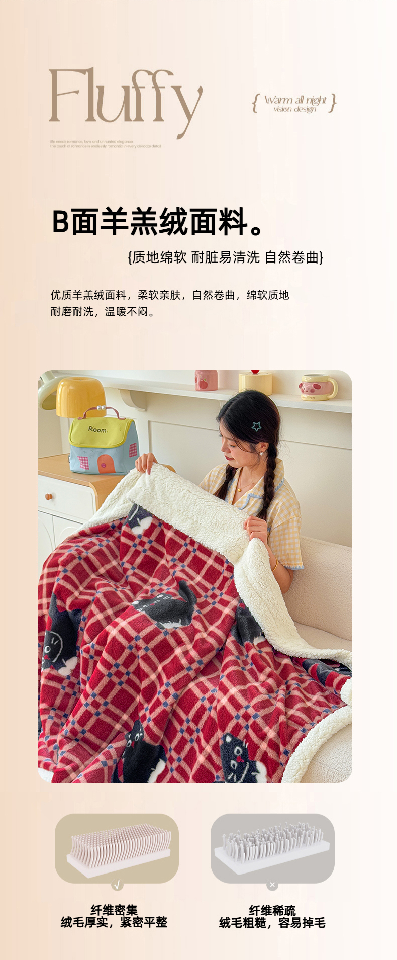 商品名称:KA家纺 2025新款兔毛绒毛毯 印花牛奶绒盖毯 多功能被套毯 兔绒毯 花小猫红