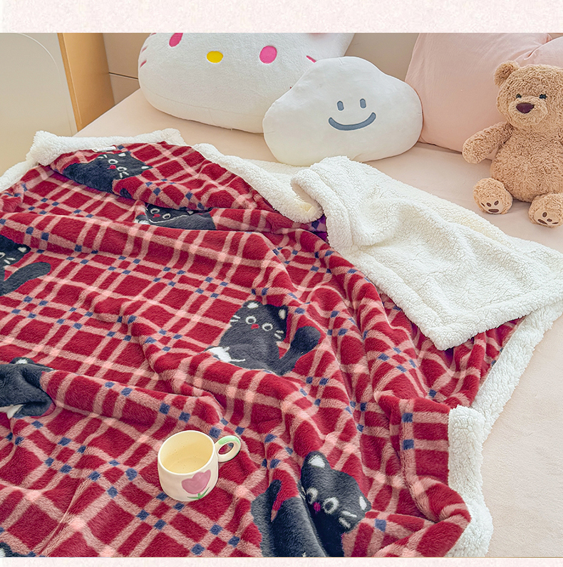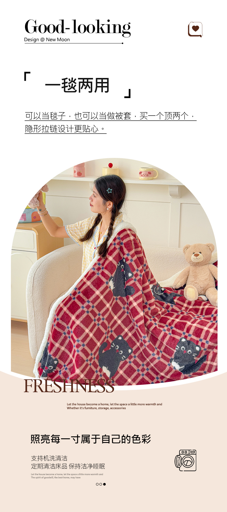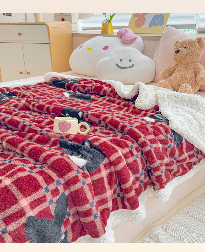 KA家纺 2025新款兔毛绒毛毯 印花牛奶绒盖毯 多功能被套毯 兔绒毯 花小猫红