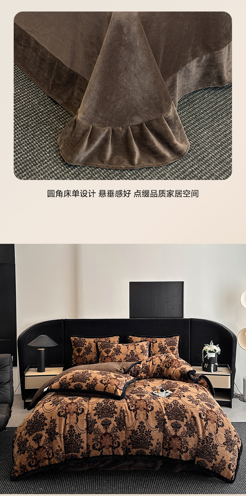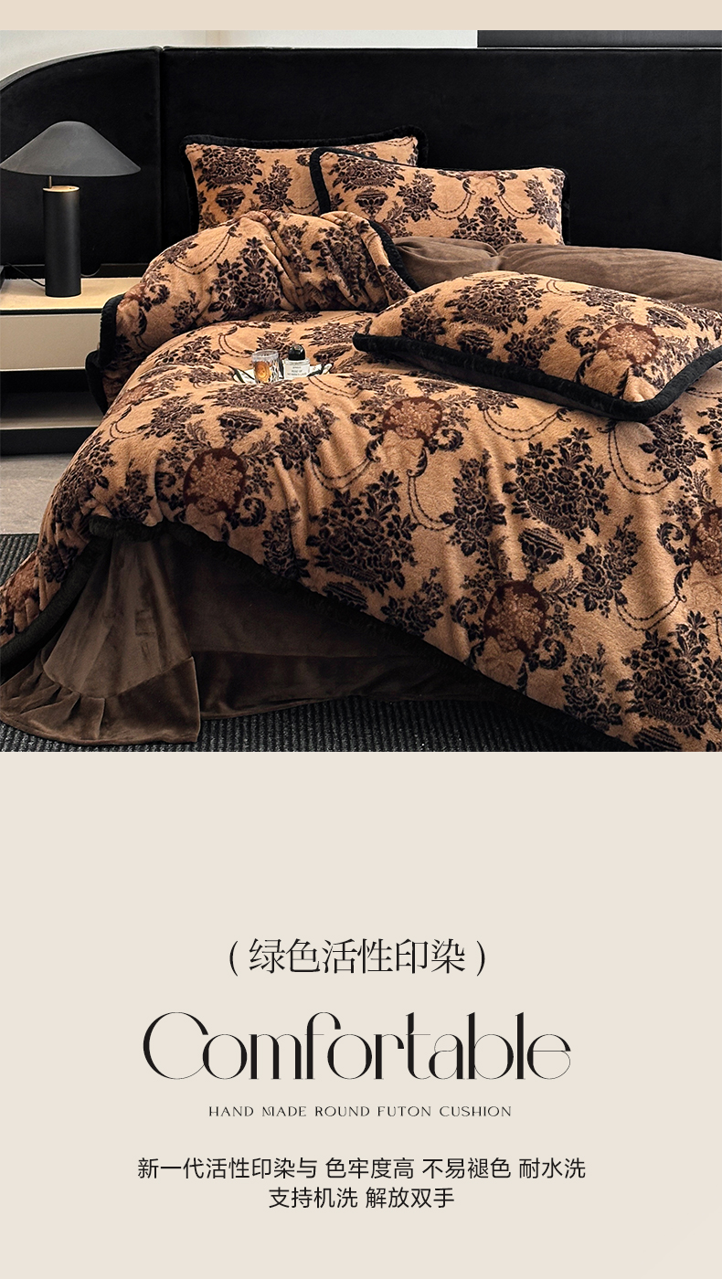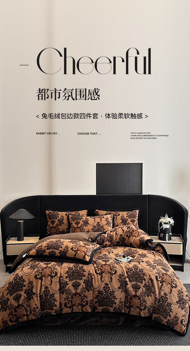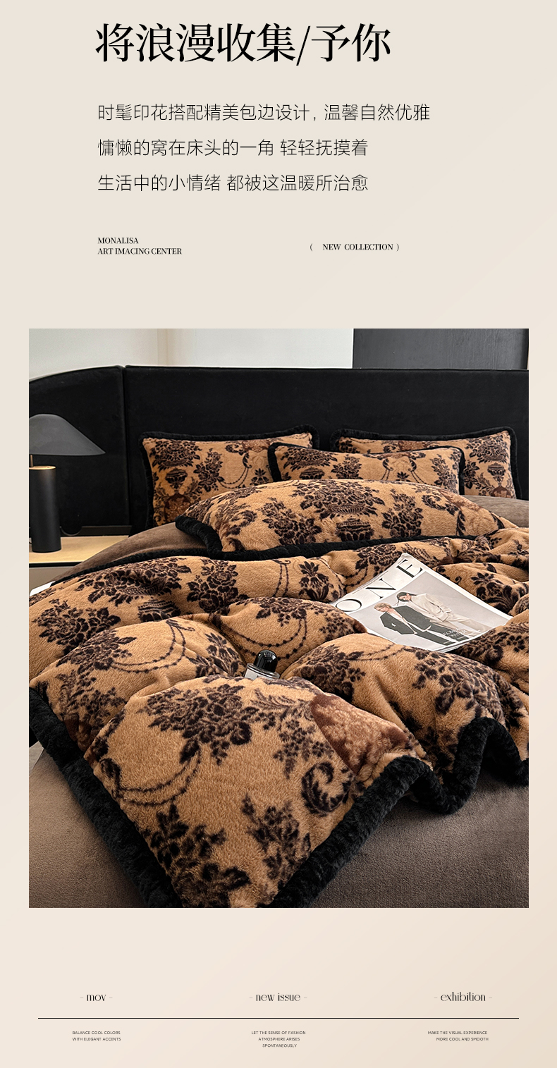 民新家纺 2025新款兔毛绒包边款四件套 欧式花