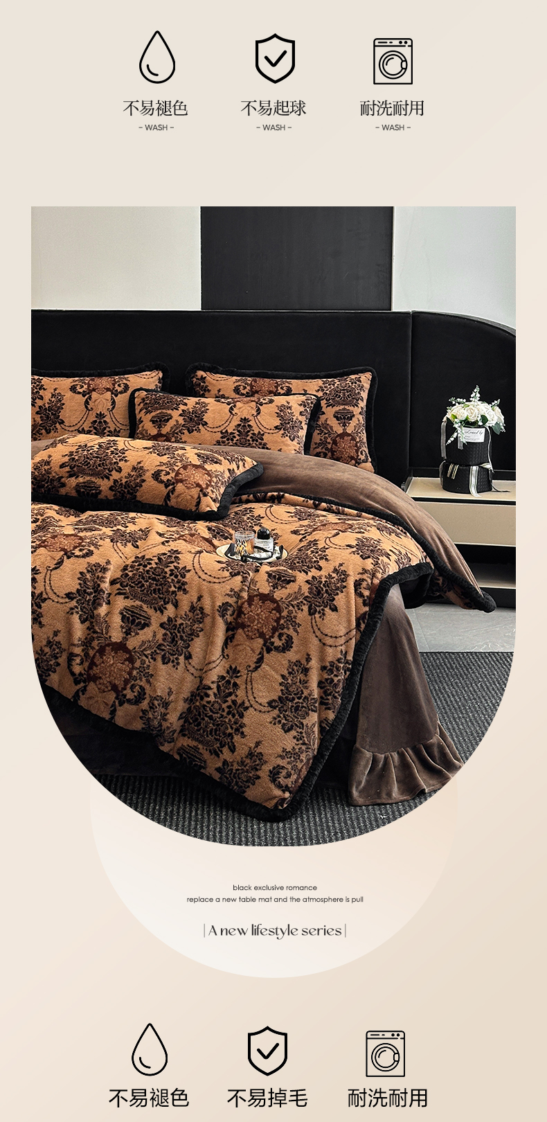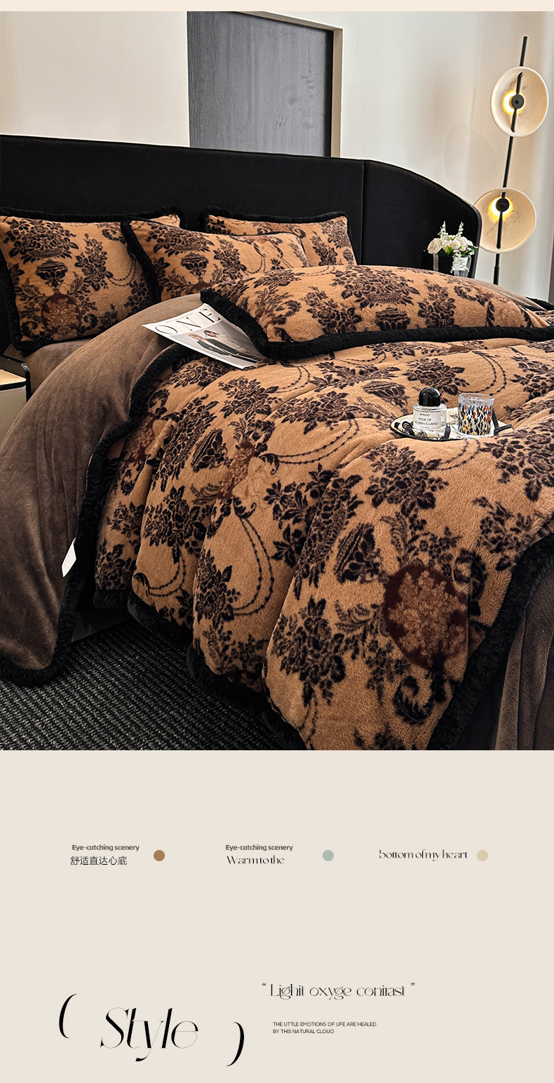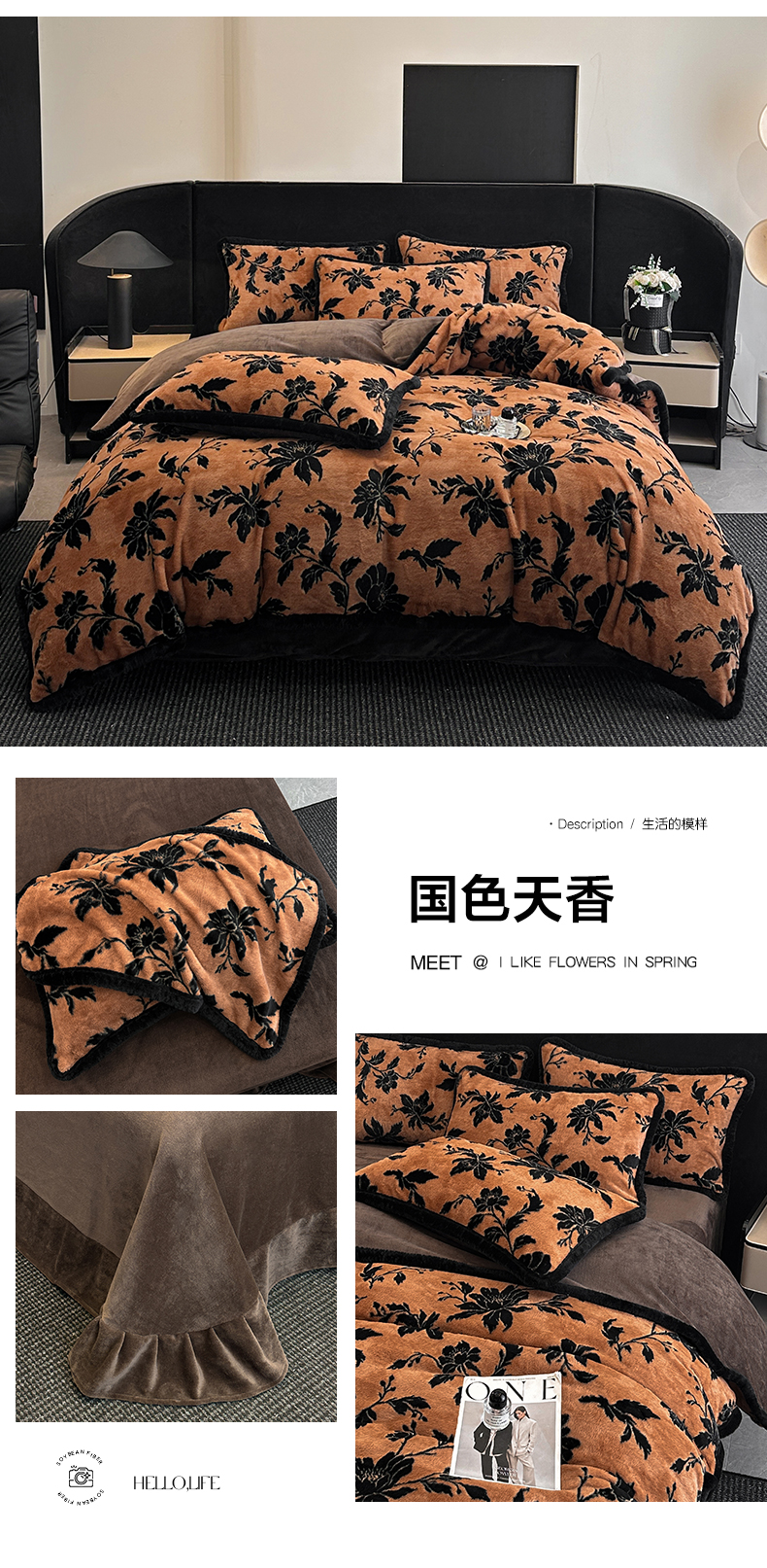 民新家纺 2025新款兔毛绒包边款四件套 欧式花