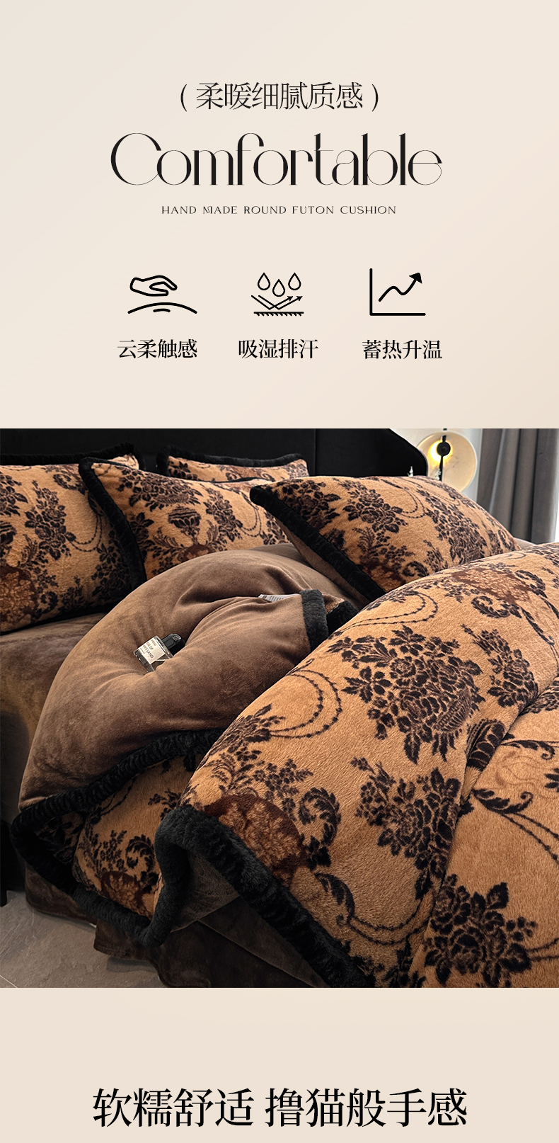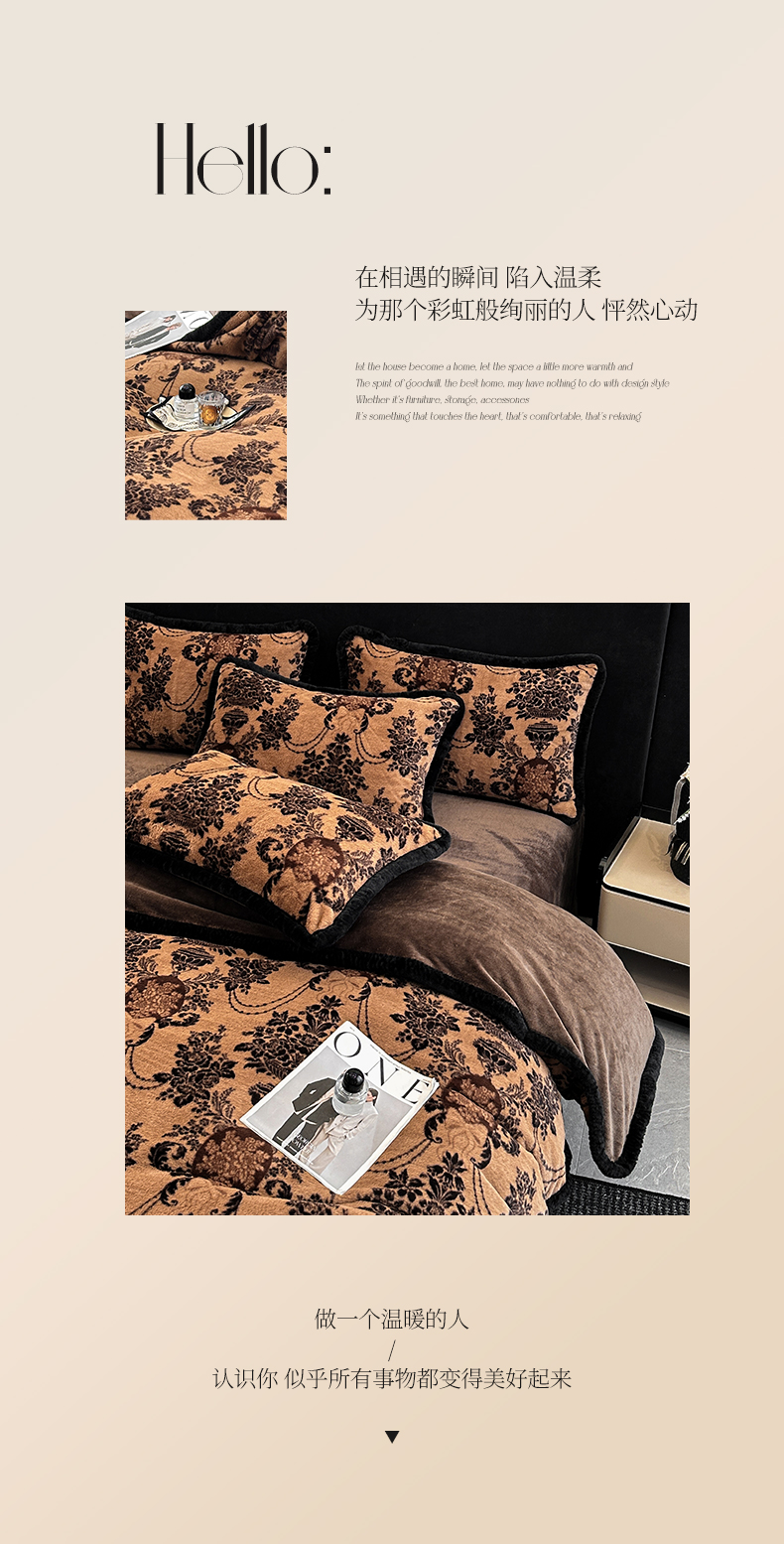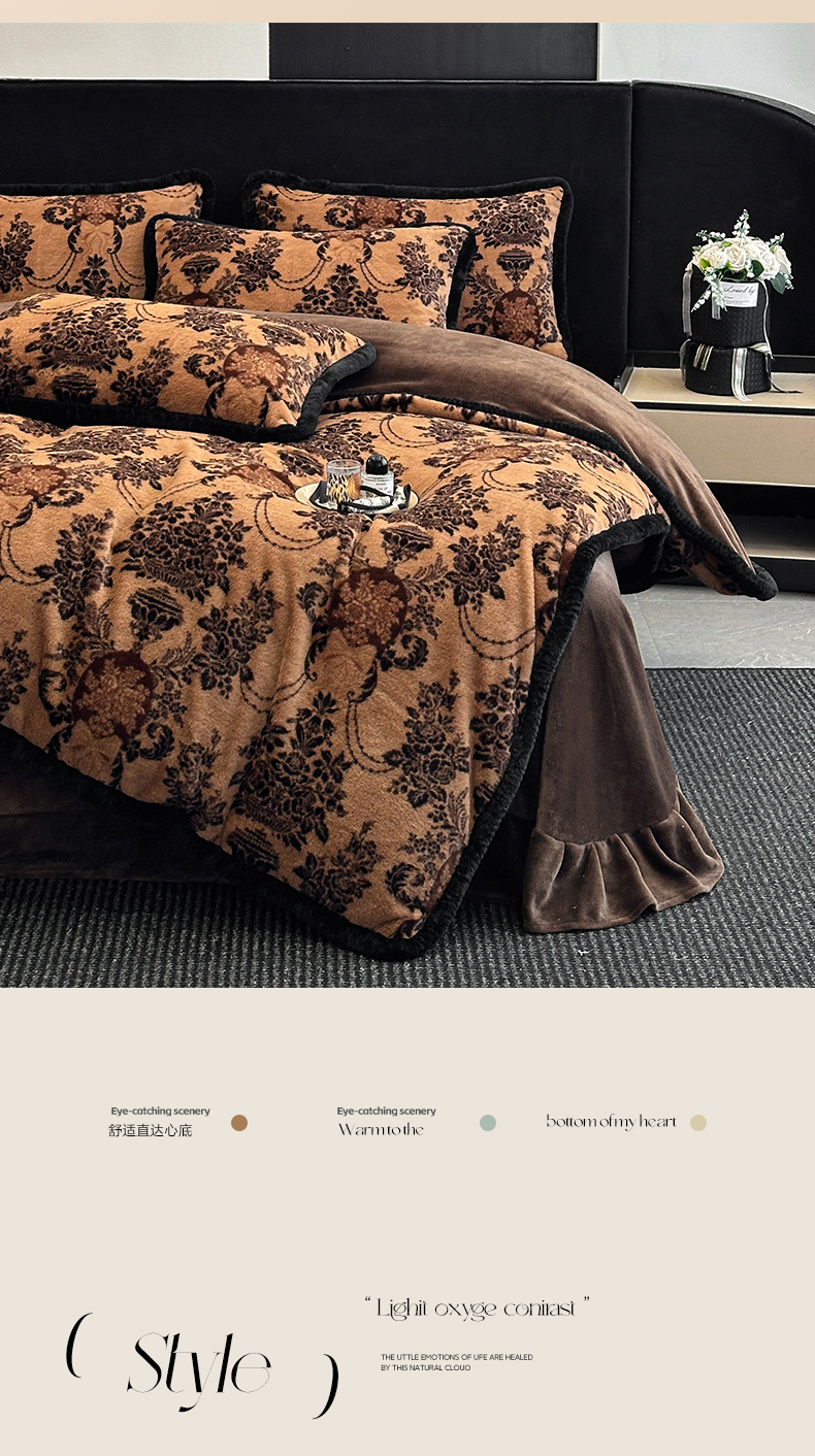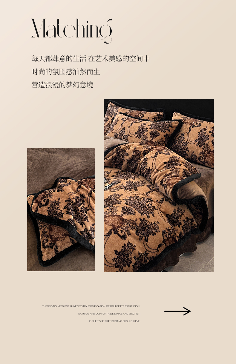 民新家纺 2025新款兔毛绒包边款四件套 欧式花