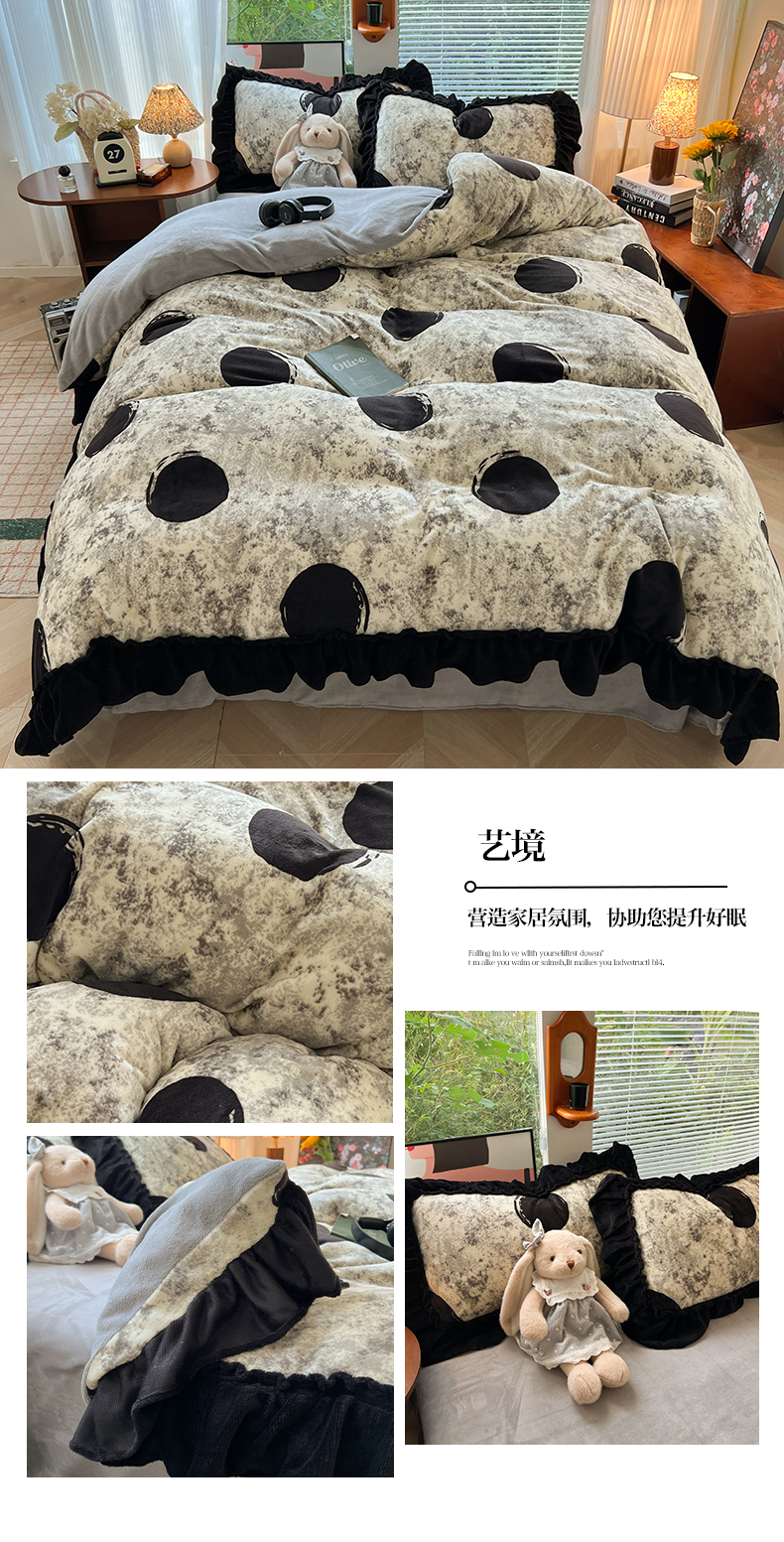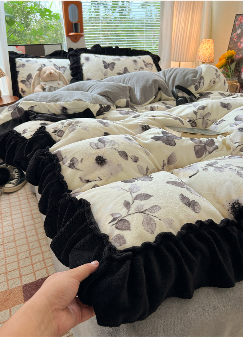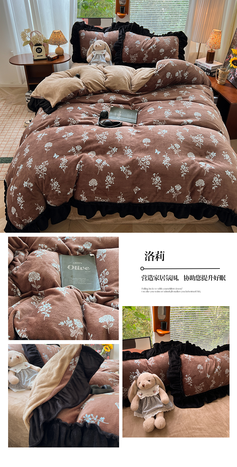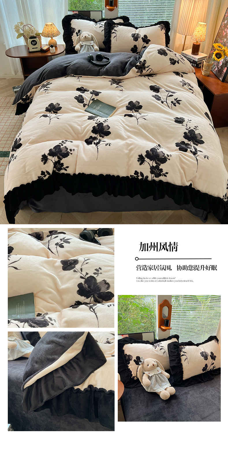 当前位置: 91家纺网 > 商品网购 > 床品套件 > 四件套 > 牛奶绒四件套 > 韩都家居 2025新款法式花边印花牛奶绒四件套 画蝶