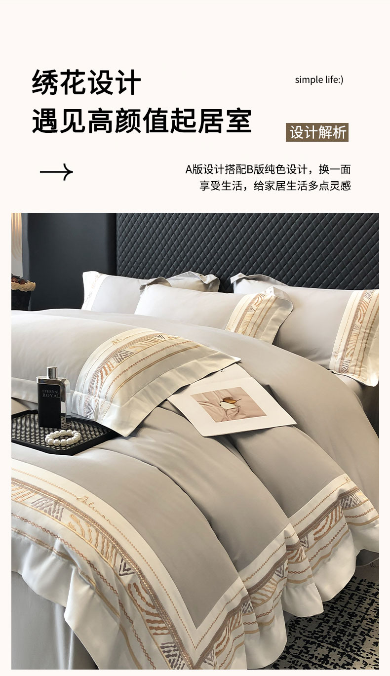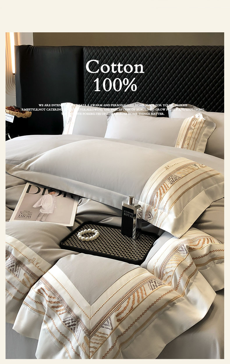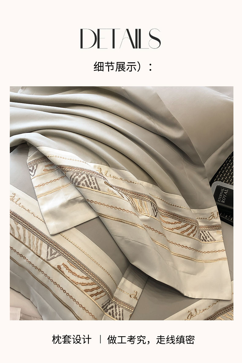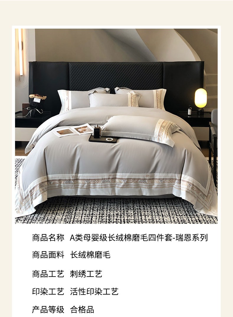 商品名称:丞音家纺 2025新款瑞恩超柔A类100支超细旦长绒棉磨毛刺绣四件套秋冬加厚纯棉全棉绣花床上用品 瑞恩-浅灰色