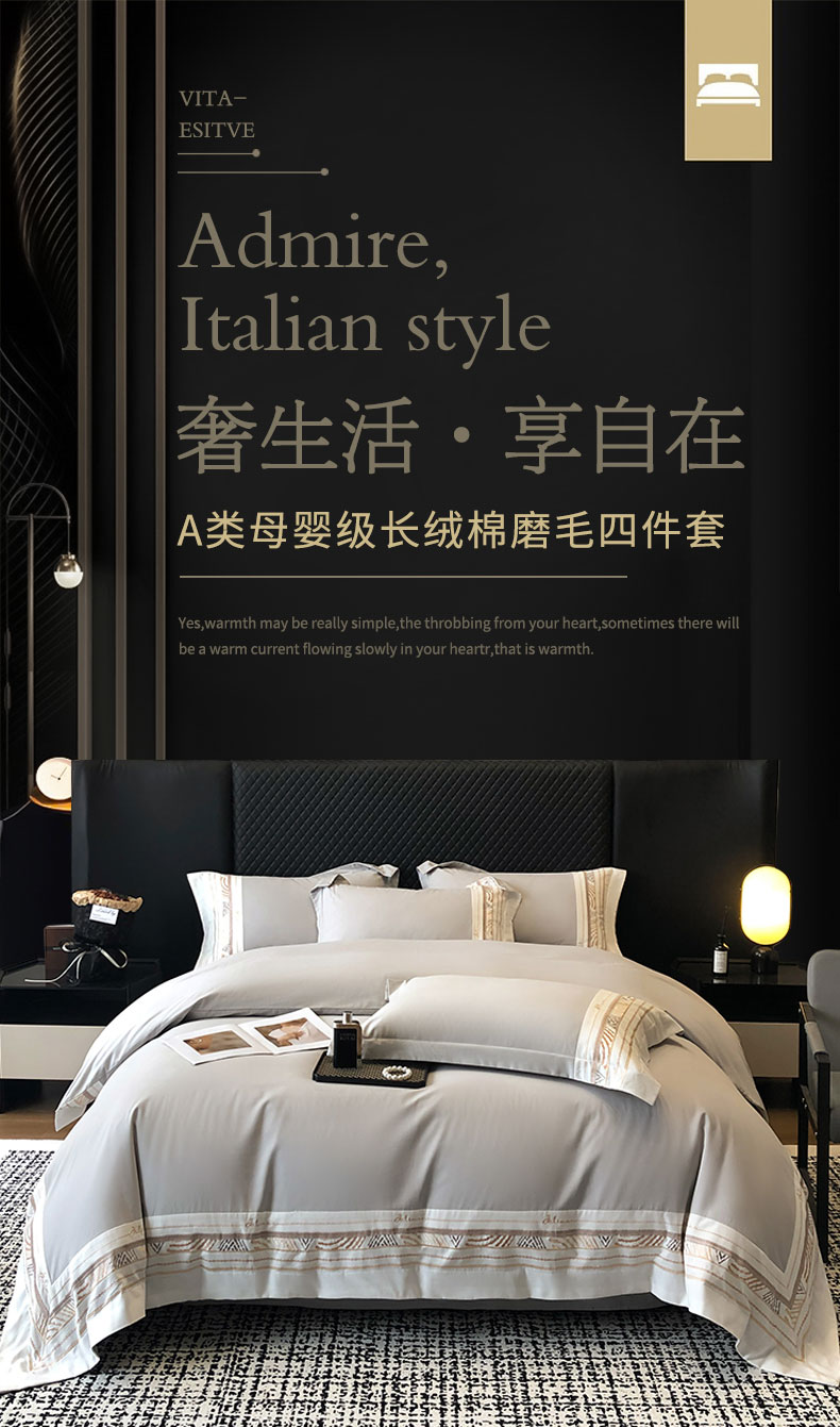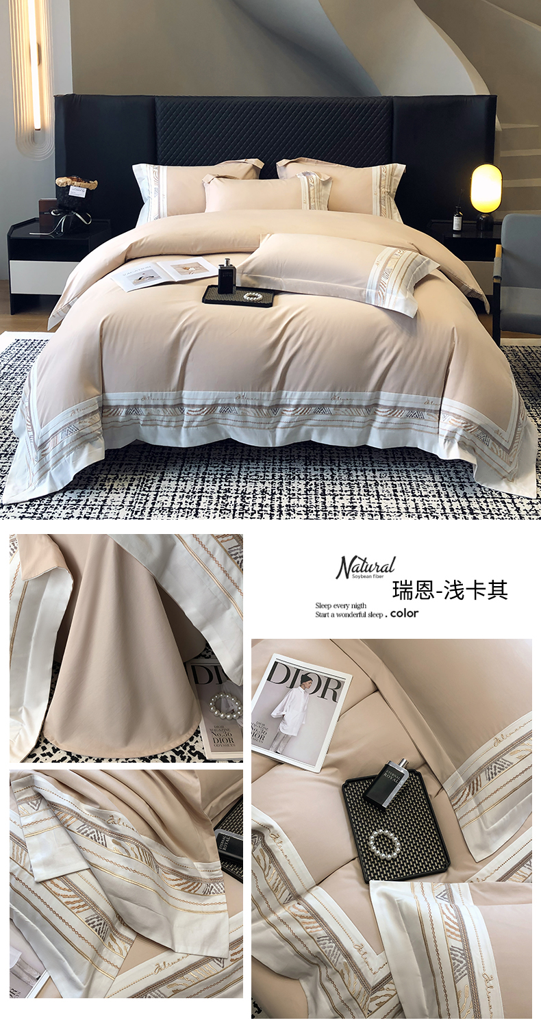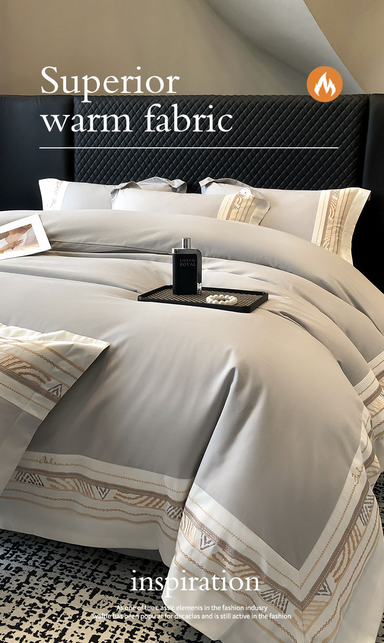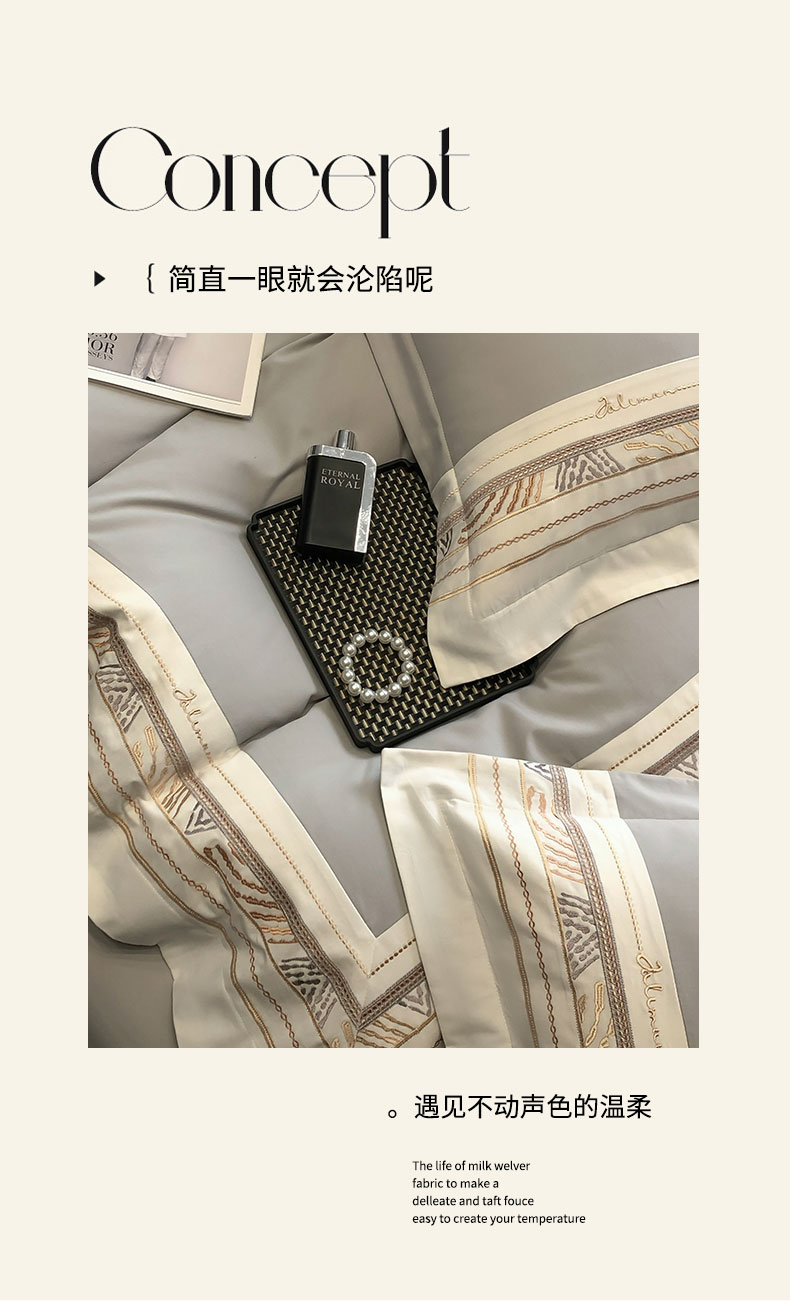 商品名称:丞音家纺 2025新款瑞恩超柔A类100支超细旦长绒棉磨毛刺绣四件套秋冬加厚纯棉全棉绣花床上用品 瑞恩-浅灰色