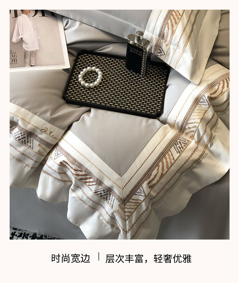 (总)丞音 2025新款法式轻奢A类长绒棉50s双股100支贡缎全棉被套纯棉四件套床笠高档礼盒包装-丽芙系列,丽芙-高级白,丽芙-优雅粉