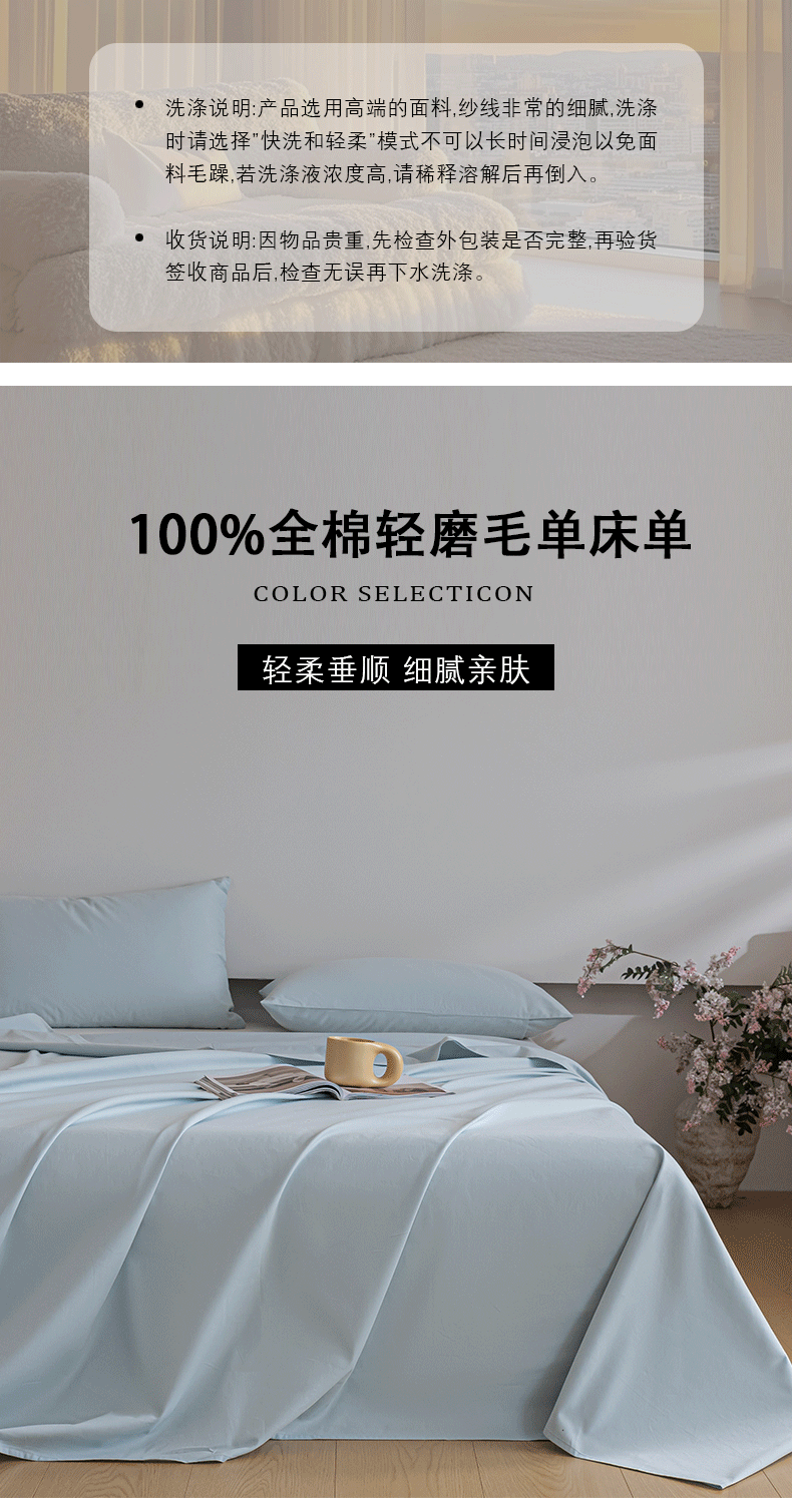 618家纺 2025新款全棉100支磨毛单品四件套系列-单床单 冰蓝