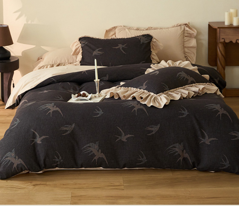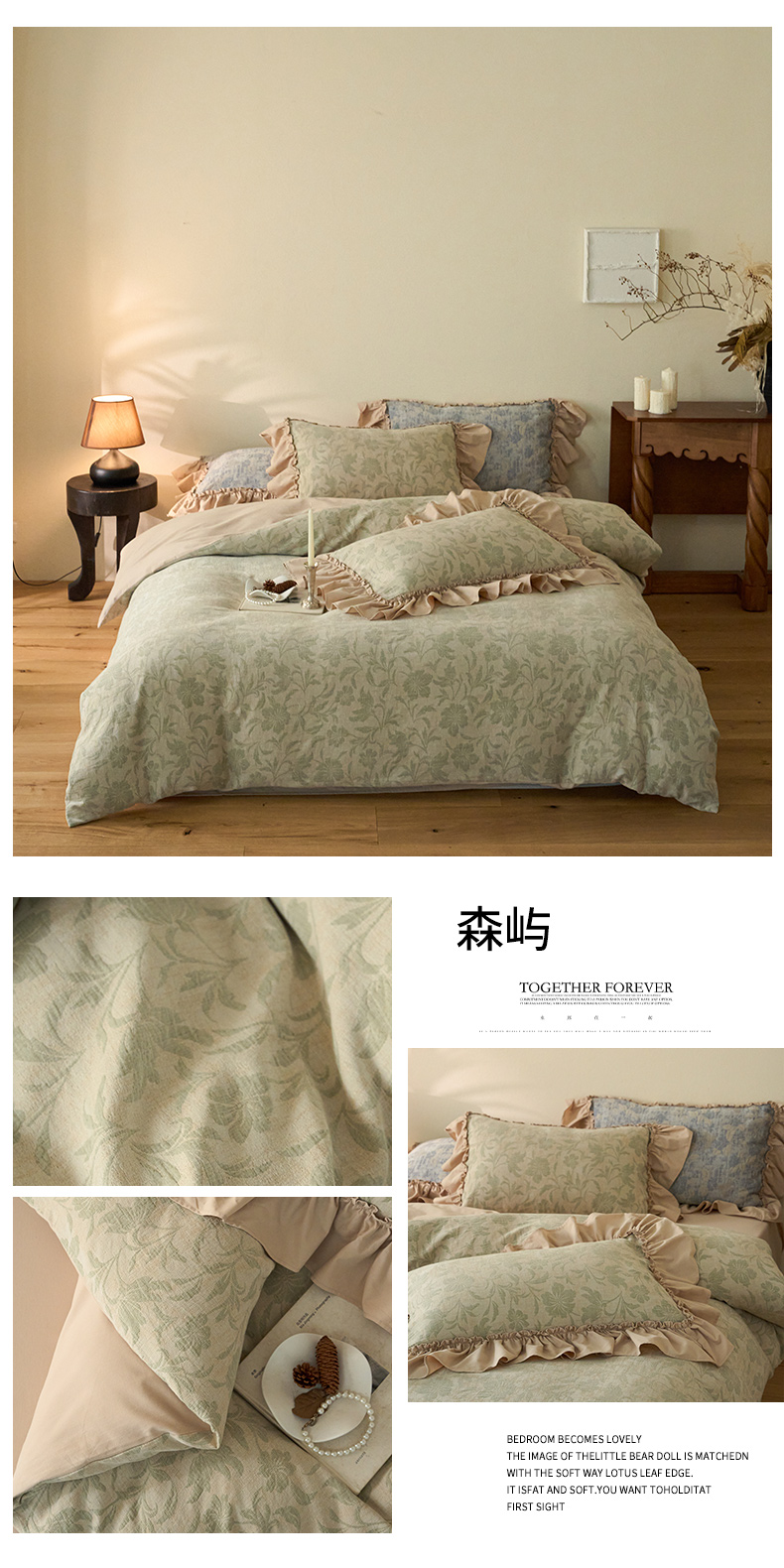圆岛家纺 2025秋冬复古格调全棉纯棉色织提花磨毛四件套 织梦