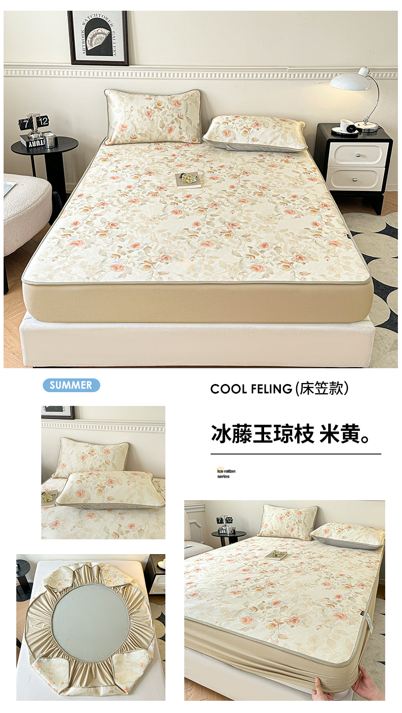 商品名称:宜代光年 2025新款数码印花冰藤席 床席-冰藤醉花季