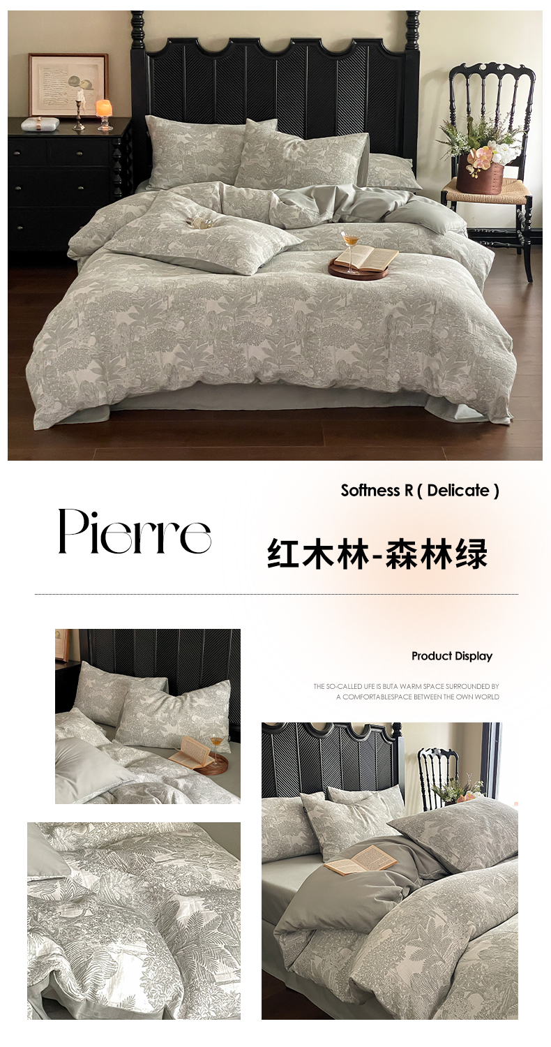 (总)宜代光年 2025新款60s全棉水洗色织提花磨毛四件套,执笔水墨-灰,红木林-深灰,言柒-暖橘,云树-灰,执笔水墨-咖,红木林-森林绿,云树-森林绿