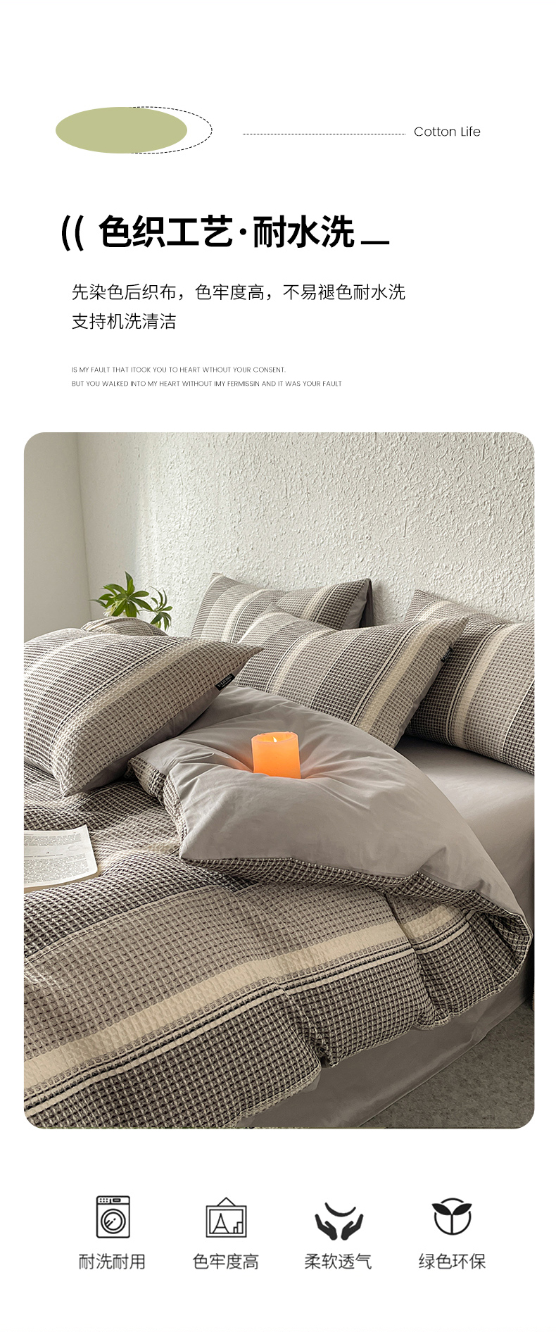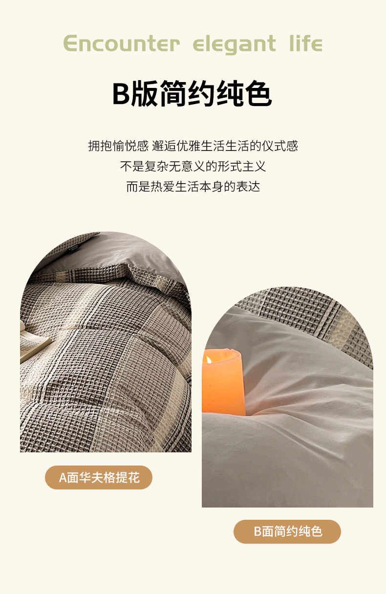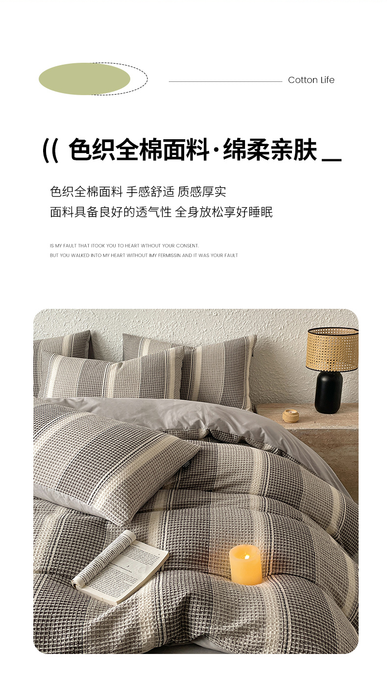 商品名称:宜代光年 2025新款全棉色织提花华夫格四件套 华夫格-灰