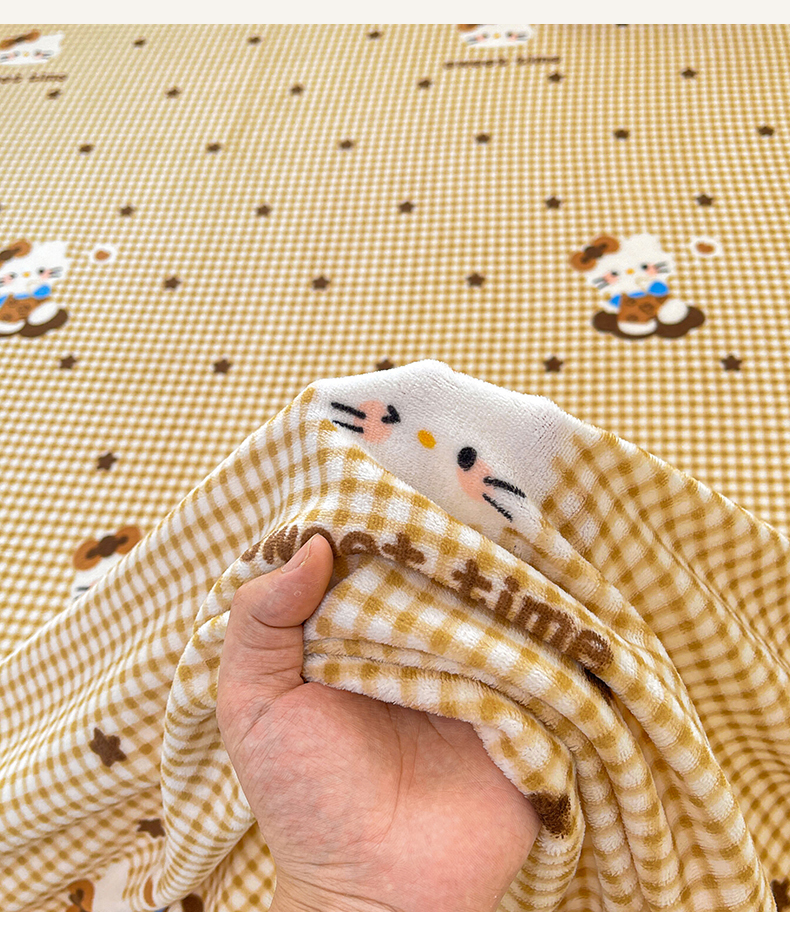 • 91家纺网 家纺一手货源 找家纺 爱屋及屋 2025新款牛奶绒印花床单 可爱猫