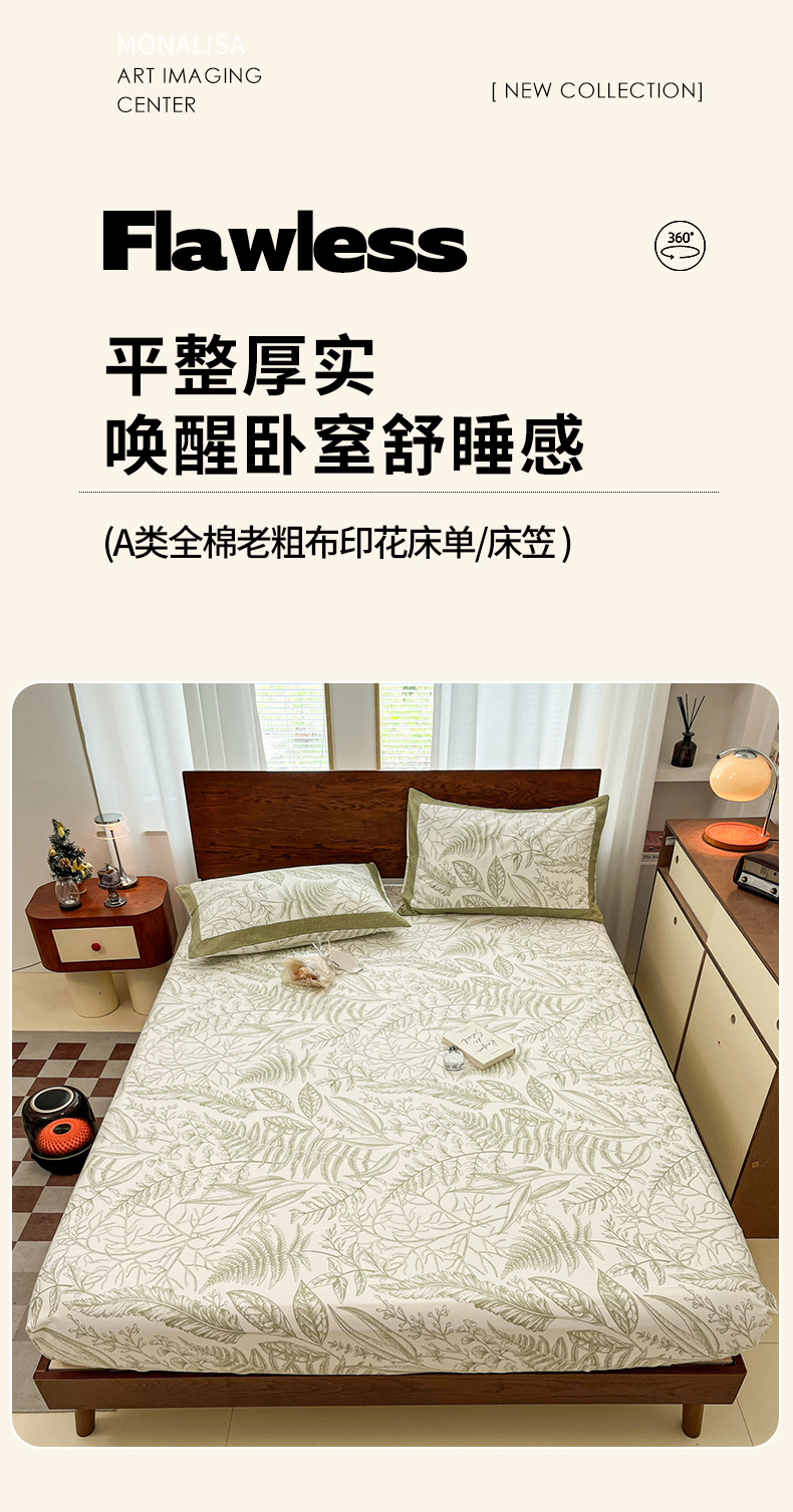 宜代光年 2025新款全棉老粗布数码印花拼角工艺床单床笠 床单-叶语