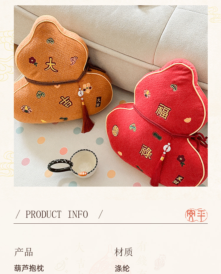 商品名称:美茉家居 2025新款云朵绒异型葫芦抱枕 大吉大利
