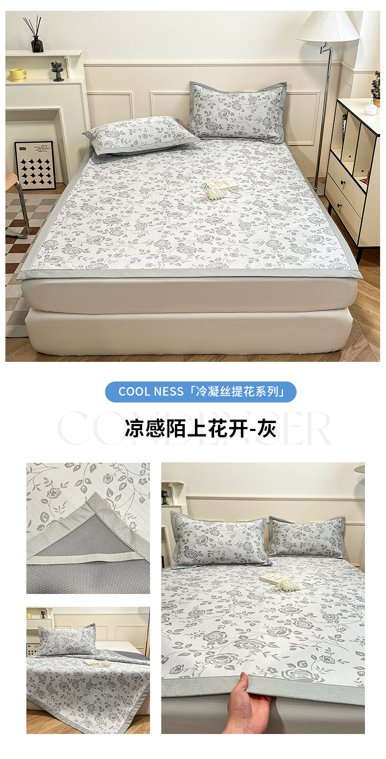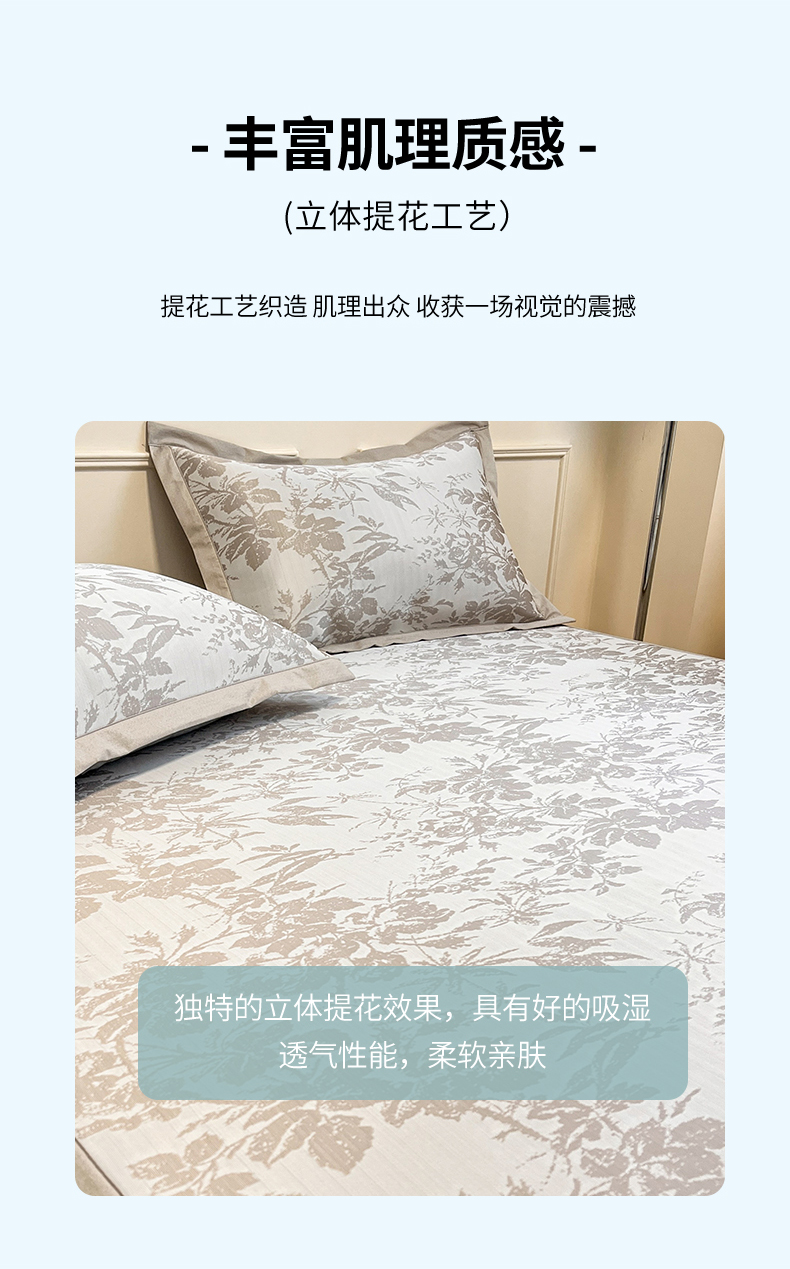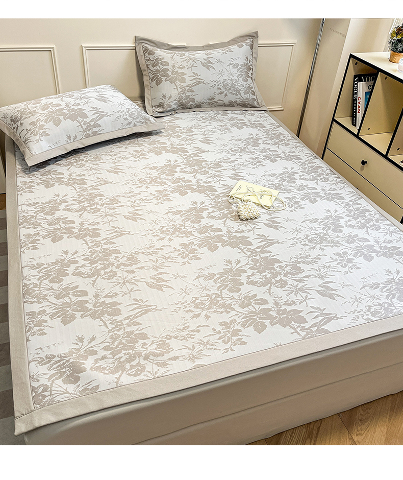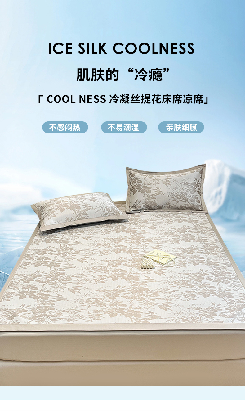 商品名称:宜代光年 2025新款冷凝丝可水洗提花凉感席 凉感繁花-咖