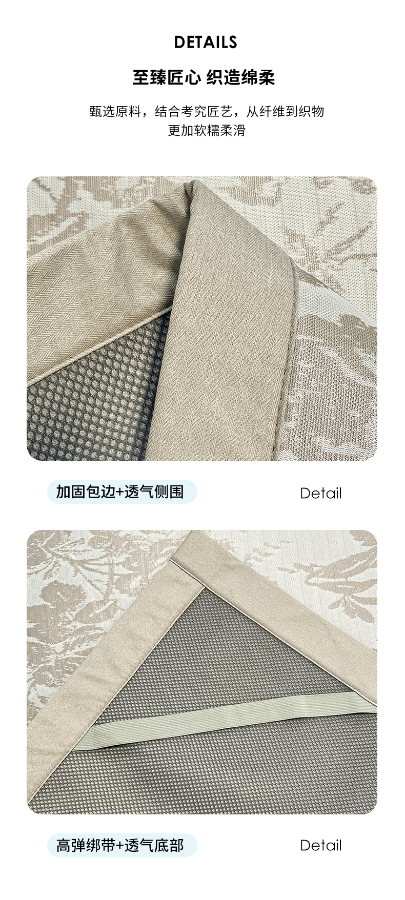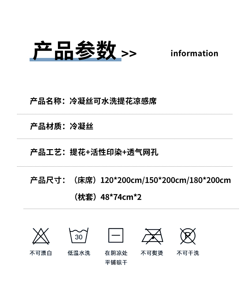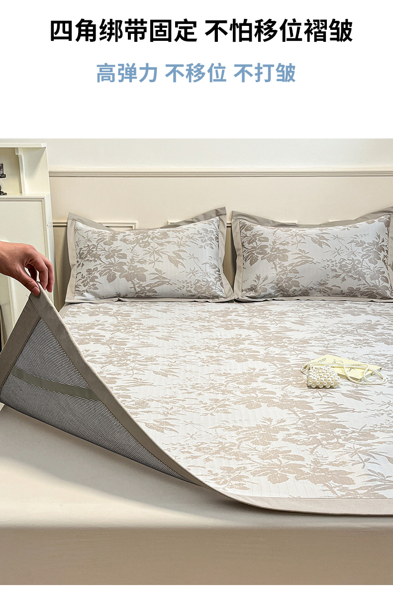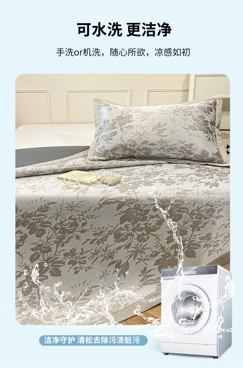 商品名称:宜代光年 2025新款冷凝丝可水洗提花凉感席 凉感繁花-咖