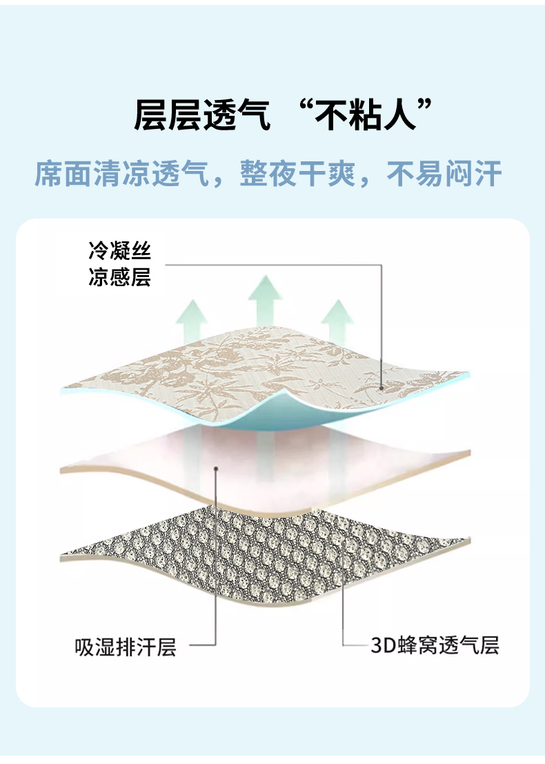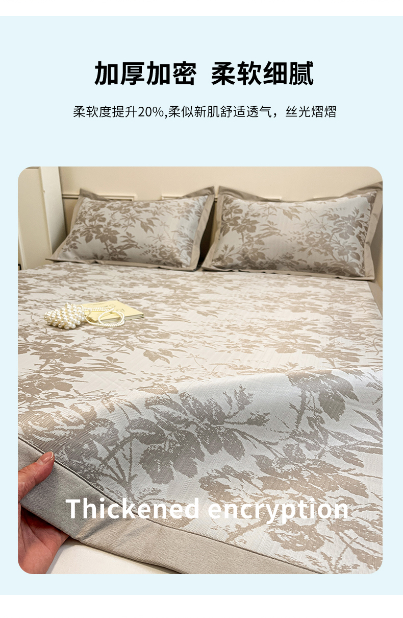 宜代光年 2025新款冷凝丝可水洗提花凉感席 凉感繁花-咖