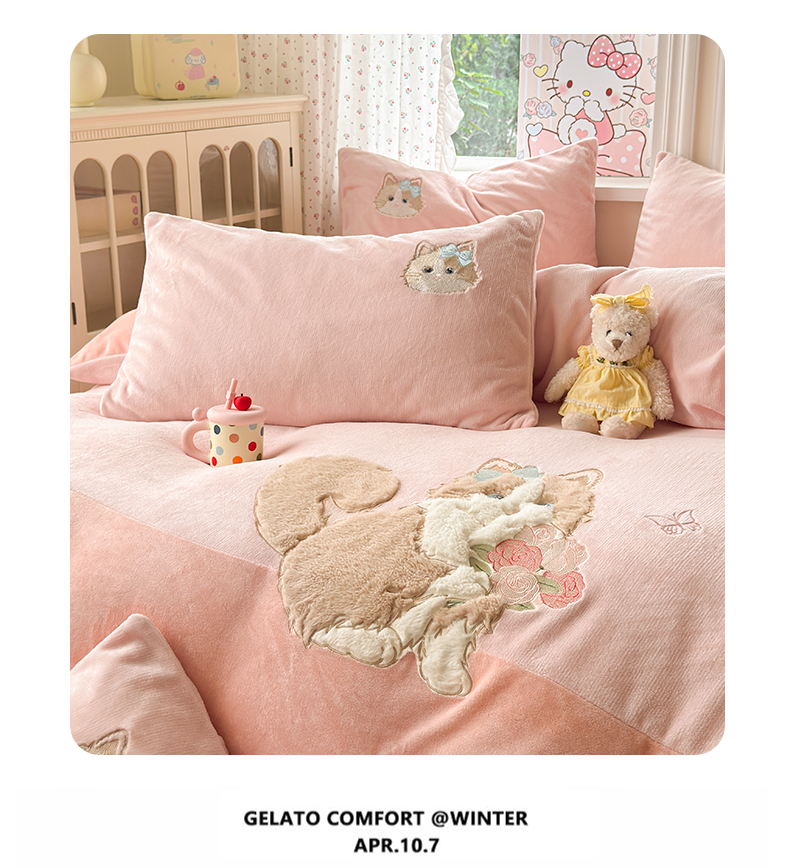 (总)寐居家纺 2025新款毛球毛巾绣牛奶绒四件套,毛球球·巴克汪仔,毛球球·豆蔻女孩,毛球球·奶黄拉布,毛球球·心动KT喵,组合图仅供展示不可下单