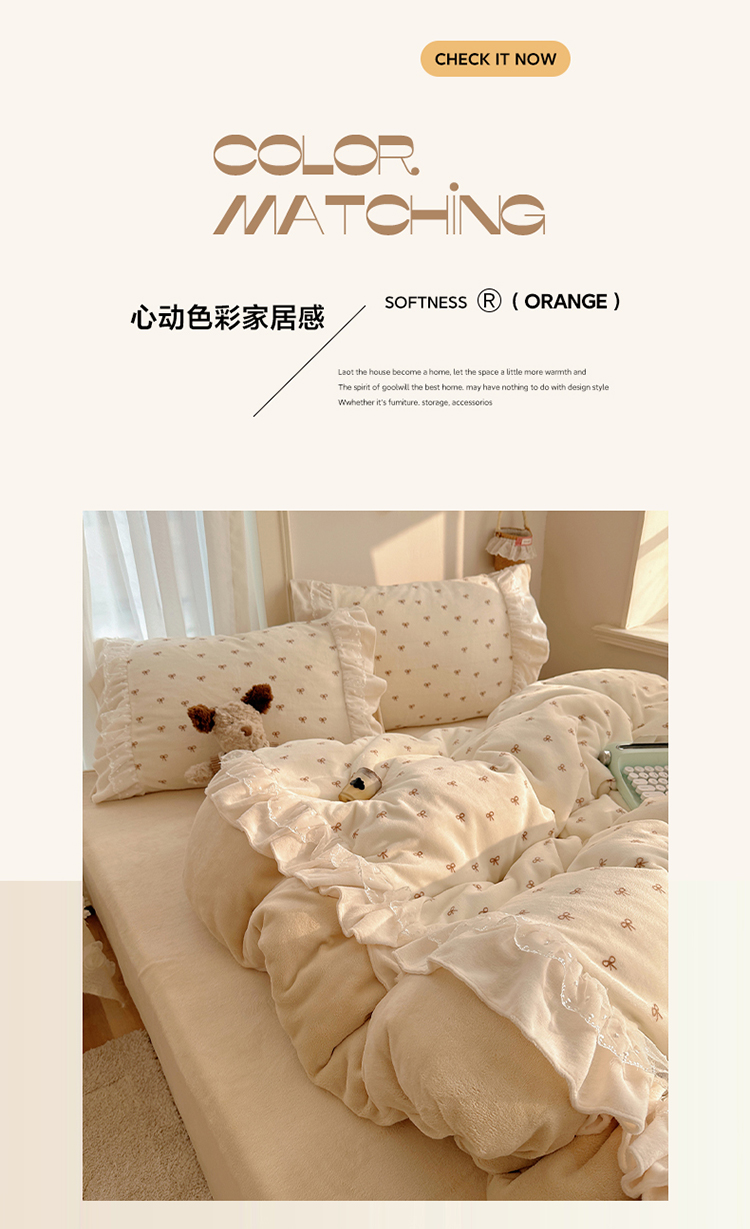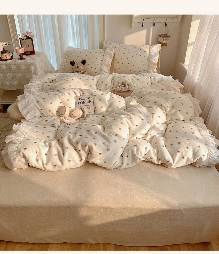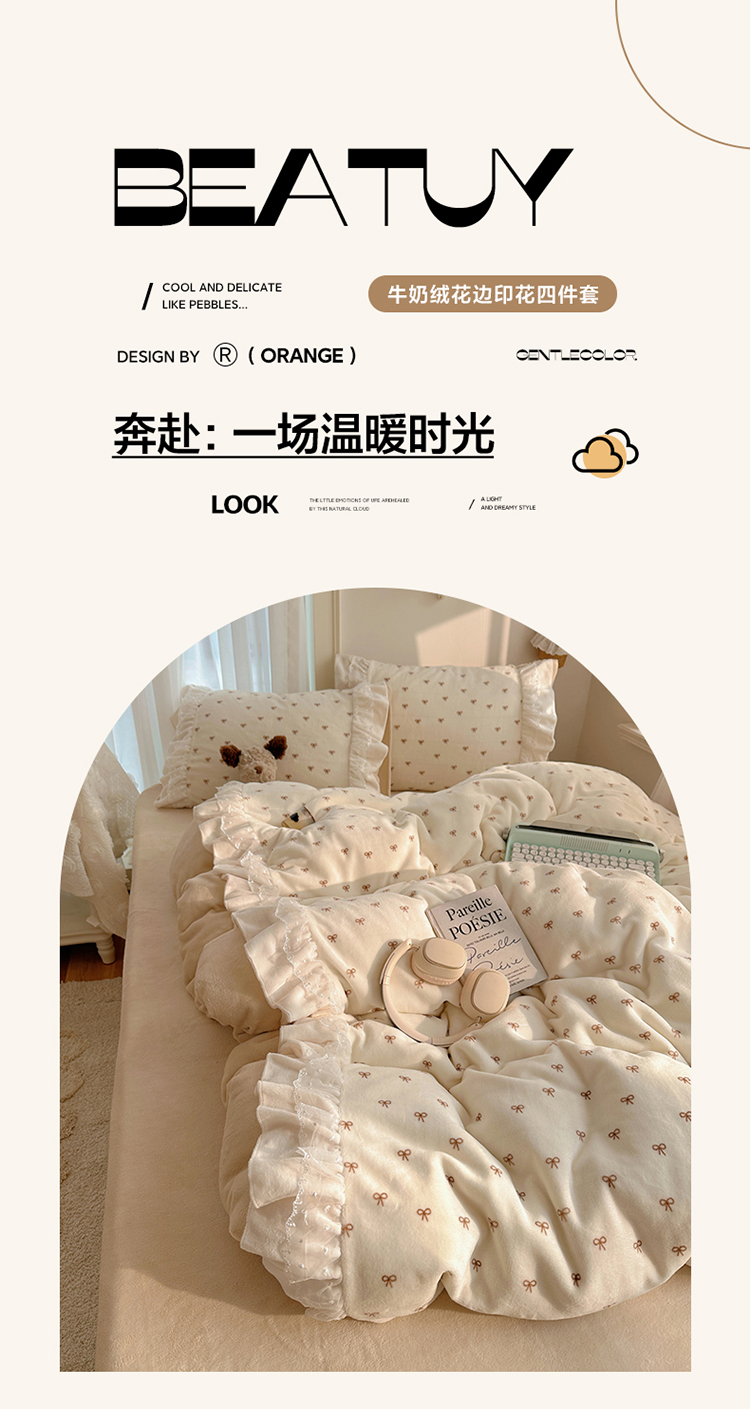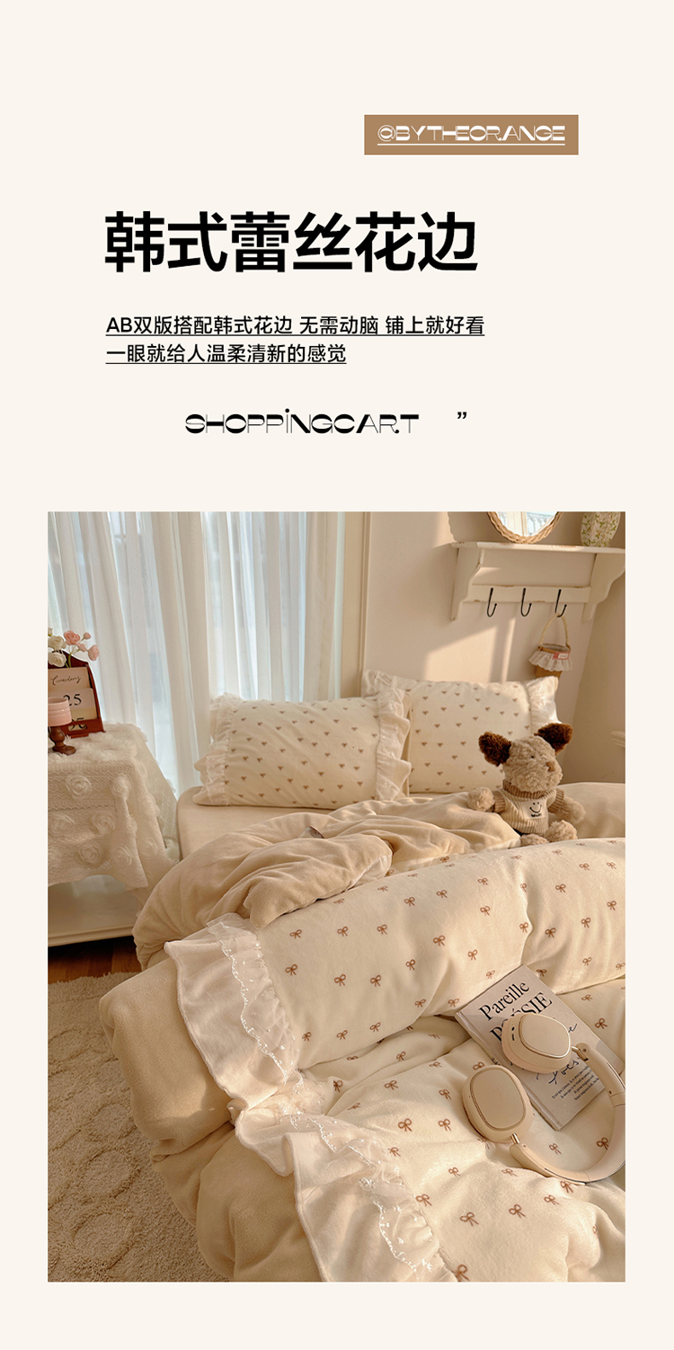 当前位置: 91家纺网 > 商品网购 > 床品套件 > 四件套 > 牛奶绒四件套 > 山茶家纺 2025新款韩系A类牛奶绒花边印花四件套梦境 梦境-小玫瑰-床裙图