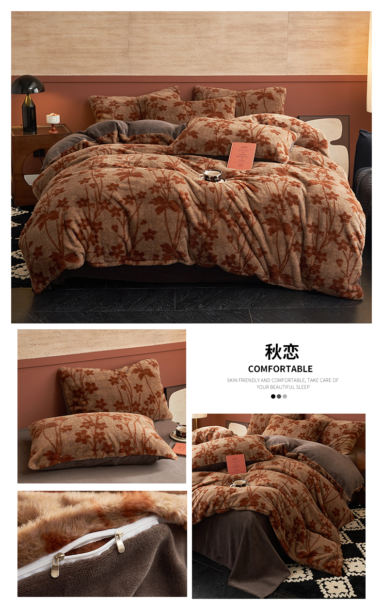 商品名称:金鹰 2025新款暖肤兔毛绒四件套牛奶绒四件套 秋恋