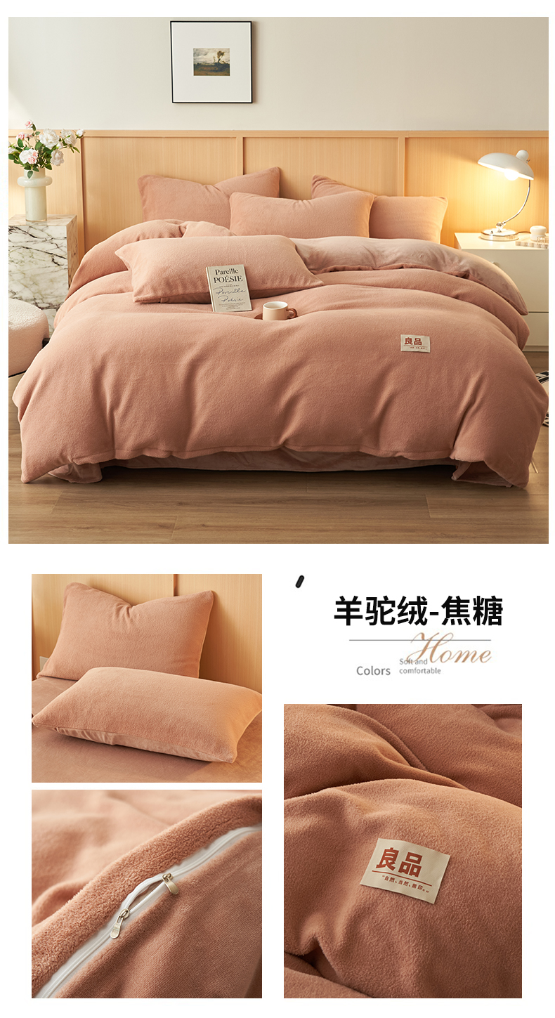 商品名称:(总)金鹰 2025新款羊驼绒牛奶绒四件套加厚保暖绒套件被套