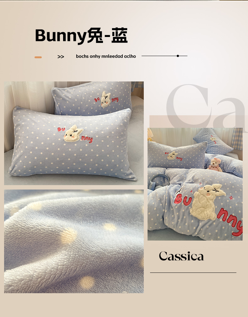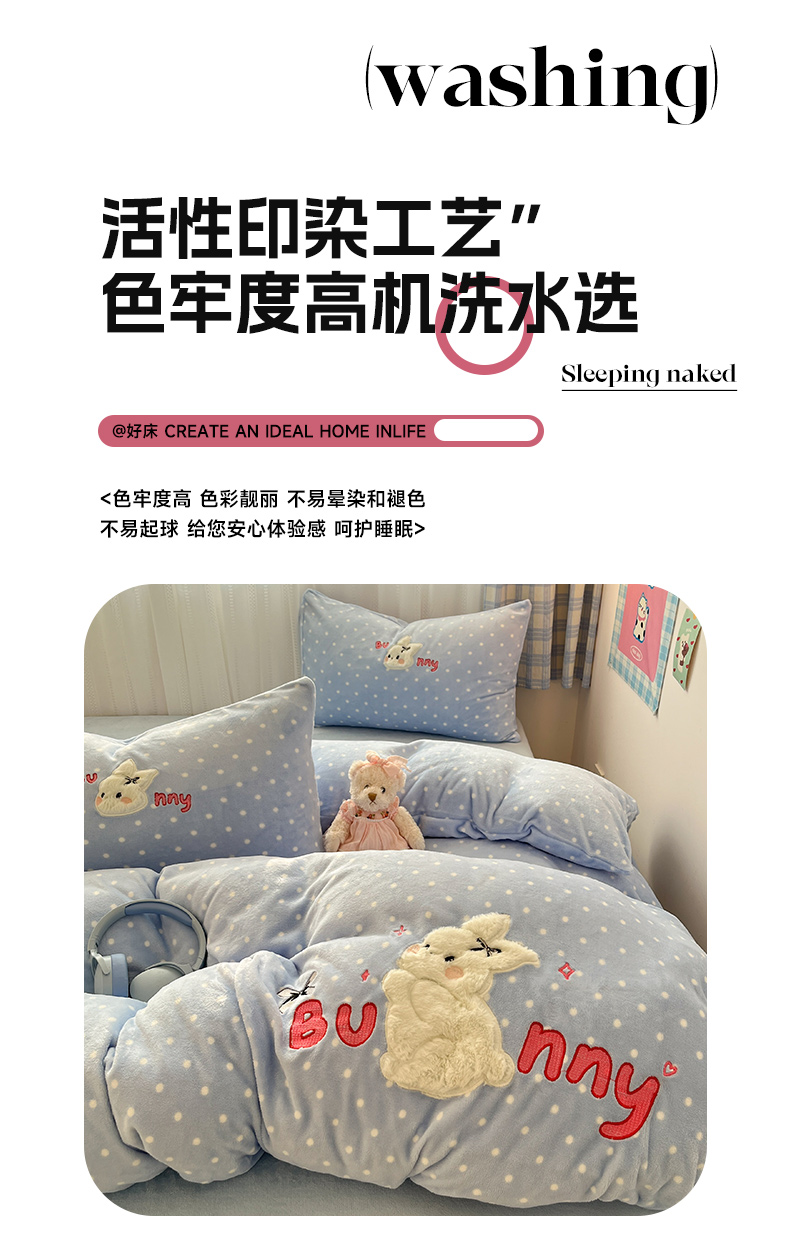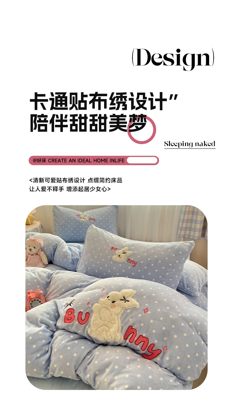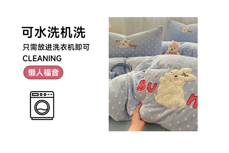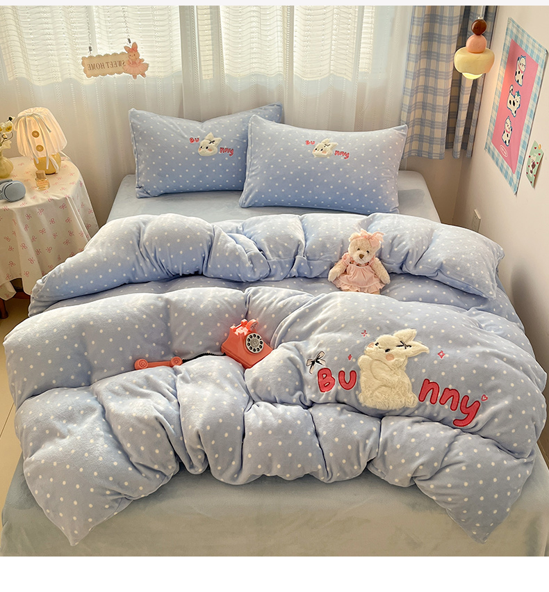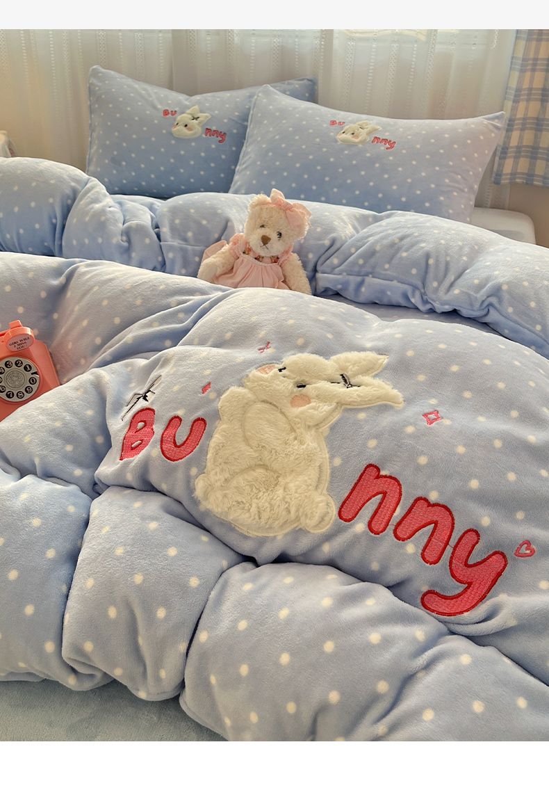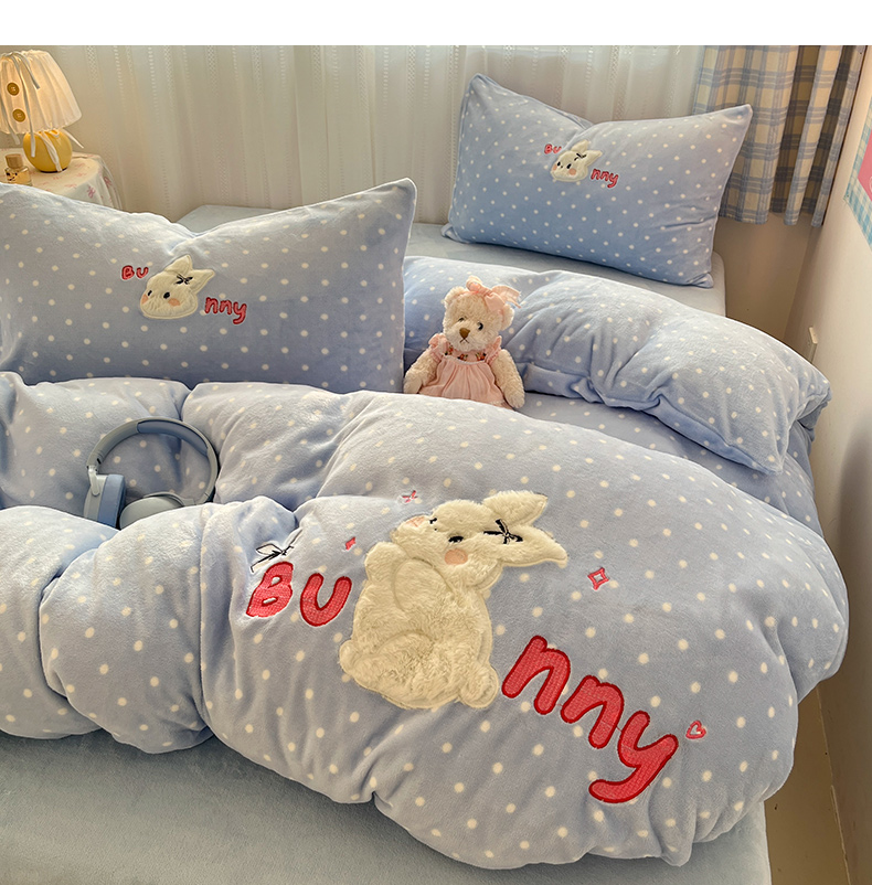 商品名称:红嘴企鹅 2025新款精致贴布绣牛奶绒四件套 Bunny兔-蓝