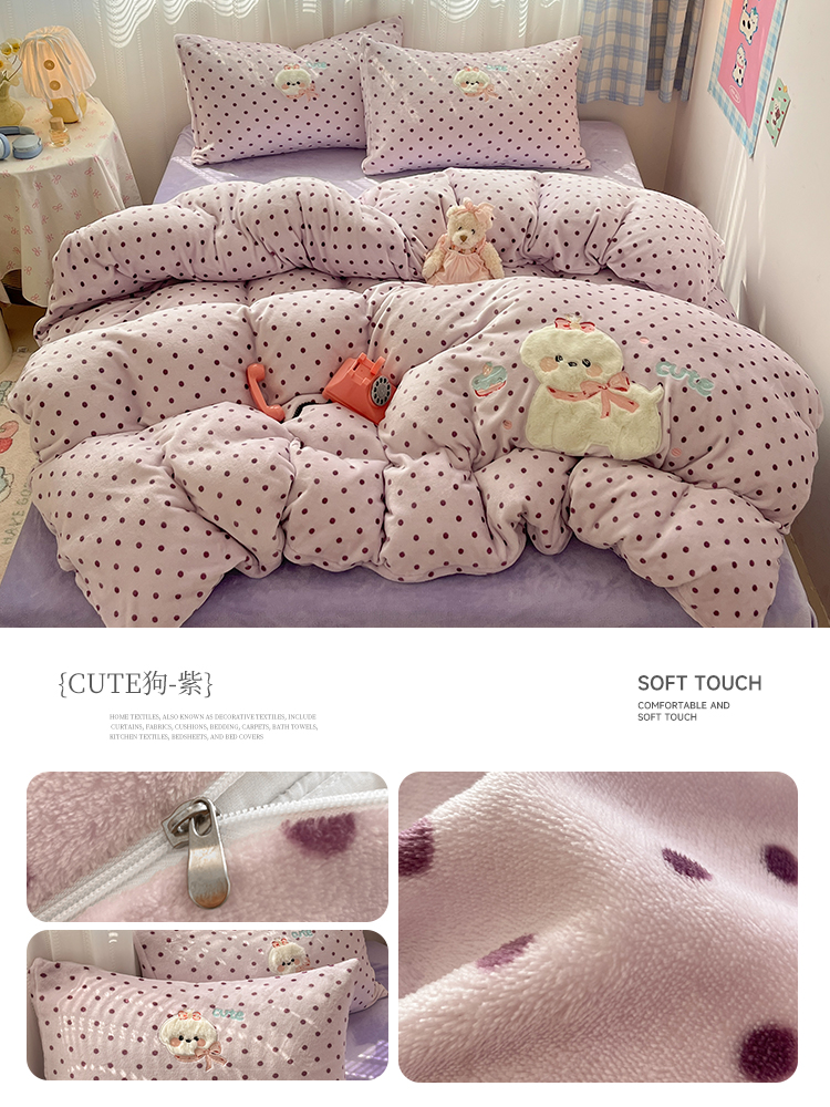 (总)红嘴企鹅 2025新款精致贴布绣牛奶绒四件套,棒棒糖-粉,Bunny兔-粉,Bunny兔-蓝,Bunny兔-紫,Cute狗-粉,Cute狗-蓝,Cute狗-紫
