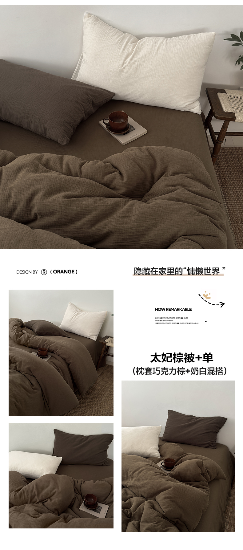 当前位置: 91家纺网 > 商品网购 > 床品套件 > 四件套 > 其它四件套 > 玖弘家居 2025新款软糯皱皱纱四件套系列 太妃棕 (燕麦+巧克力棕)